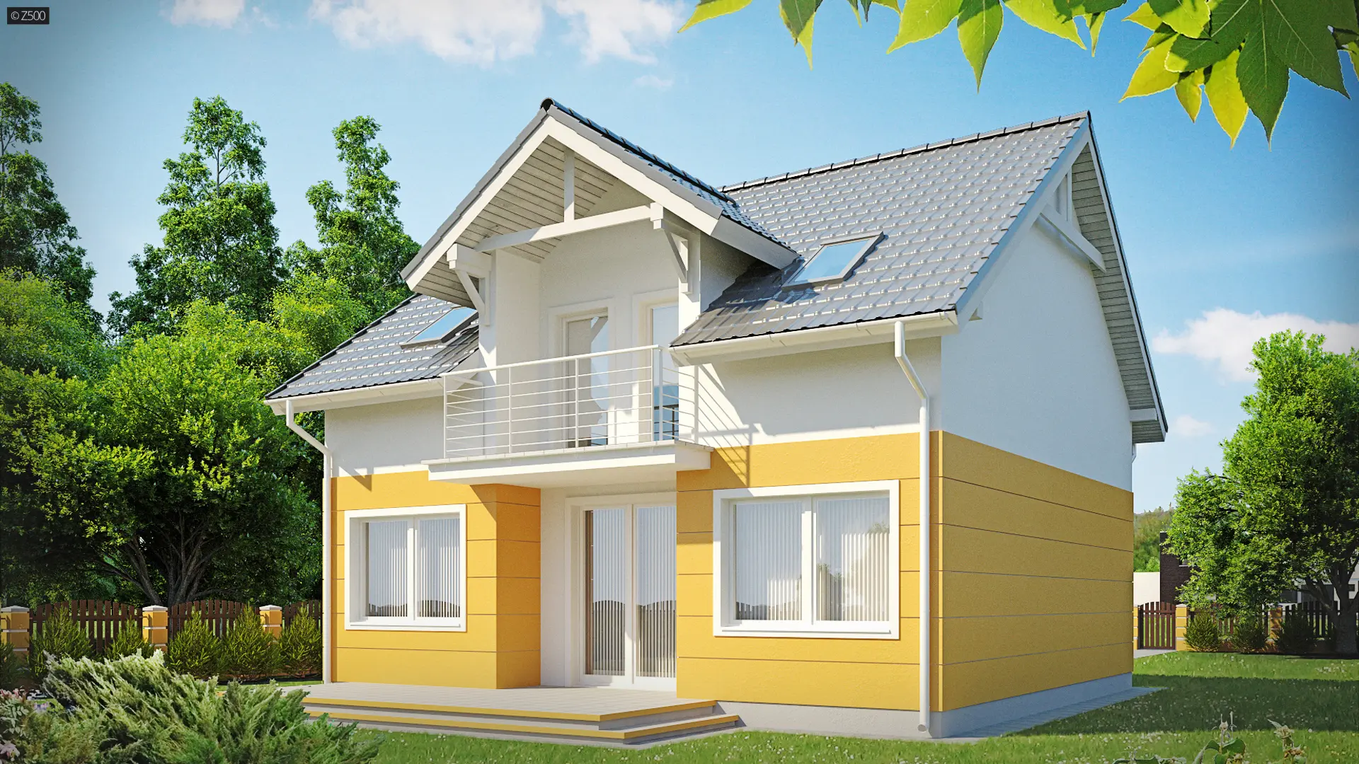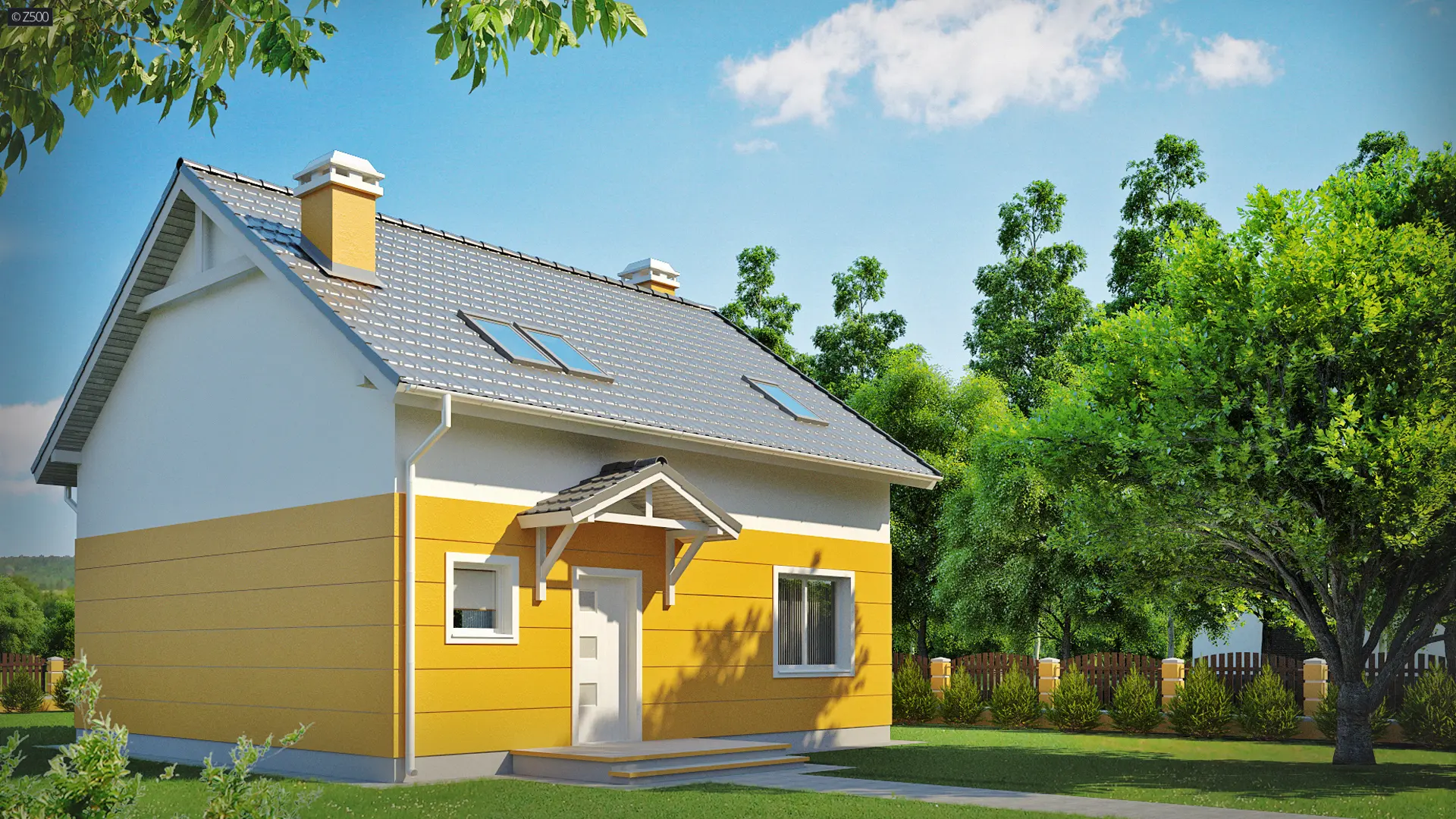 Projekt Z65 to dom jednorodzinny z wygodnym poddaszem użytkowym. Ciekawa i łatwa w budowie bryła przekryta dwuspadowym dachem gwarantuje niskie koszty realizacji. Architektura jest prosta ale nie pozbawiona uroku. Podziały na elewacji sprytnie ukrywają smukłość ścian, która jest wynikiem wykonania podwyższonej ścianki kolankowej na poddaszu. Wygodne poddasze poprawia zdecydowanie komfort użytkowania cennej powierzchni pod skosami poddasza, której koszt budowy będzie przecież taki sam w całym budynku. Propozycja wykonania ciepłej i jasnej kolorystyki uderza świeżością będąc jednocześnie wyważoną w swych proporcjach.