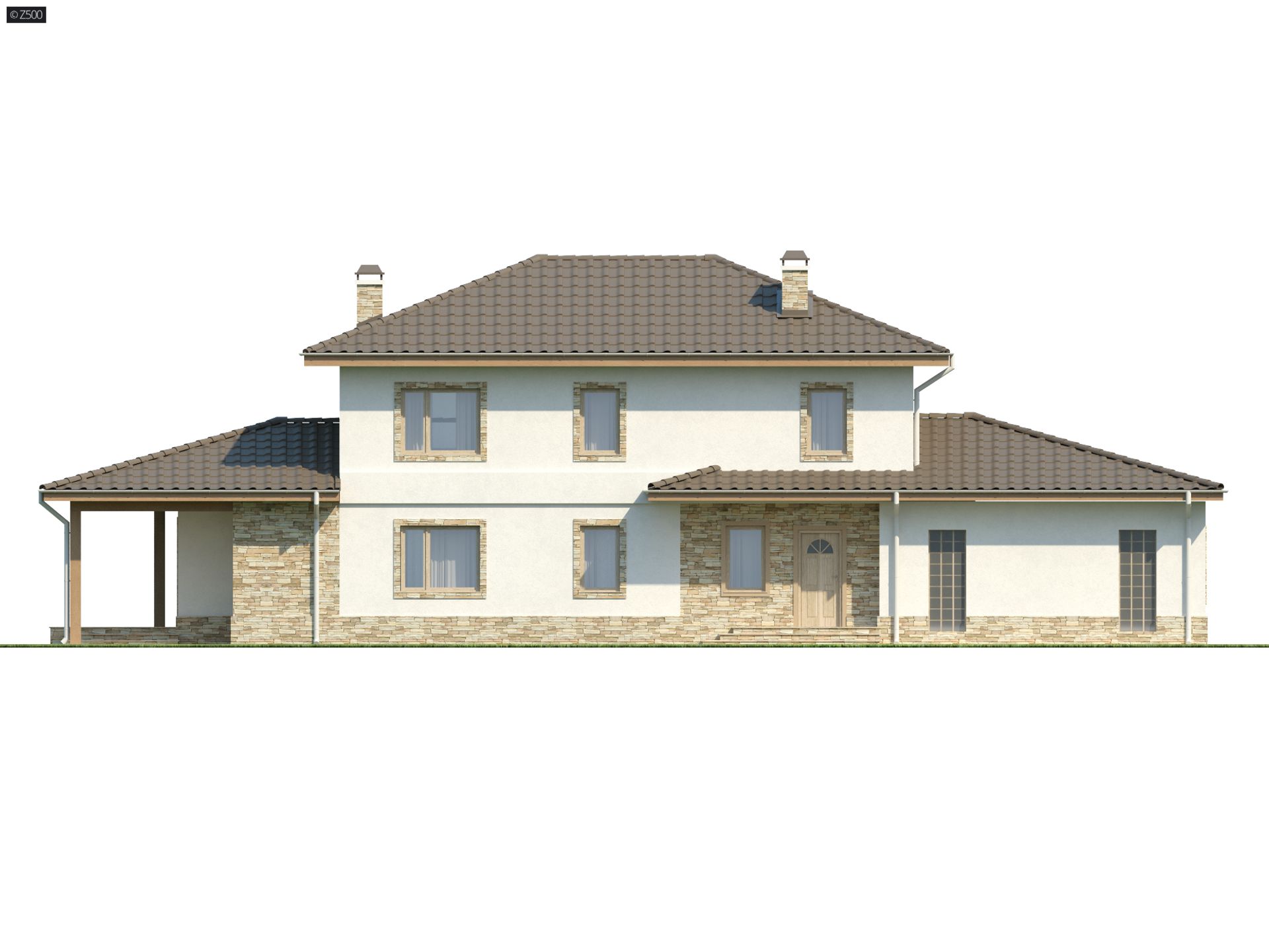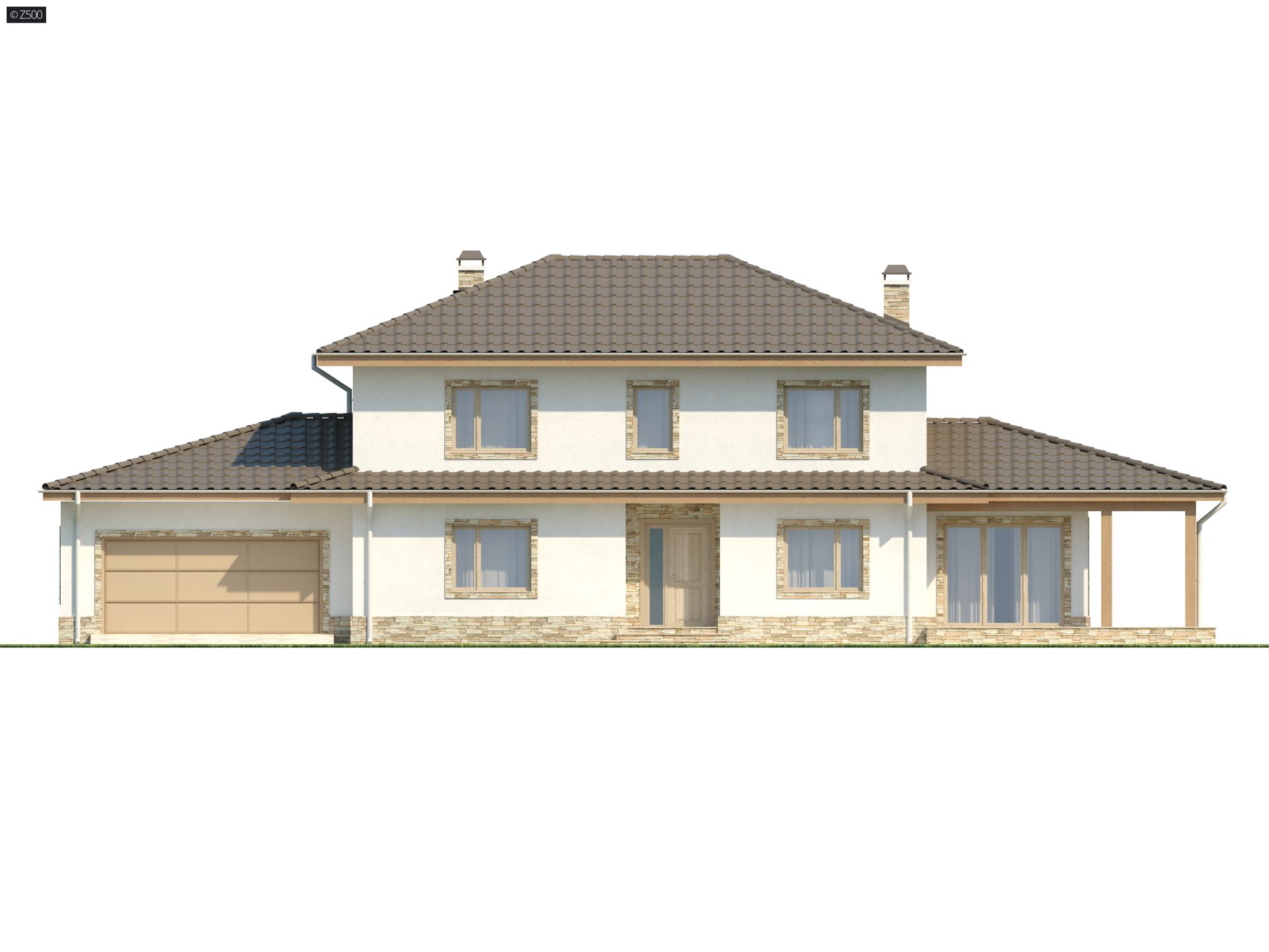 Piętrowy dom w stylu włoskiej willi z zadaszonym tarasem i garażem