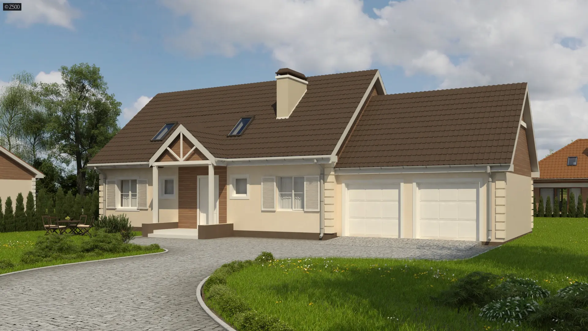 Dom z poddaszem i 6 pokojami, podwójnym garażem i dachem dwuspadowym