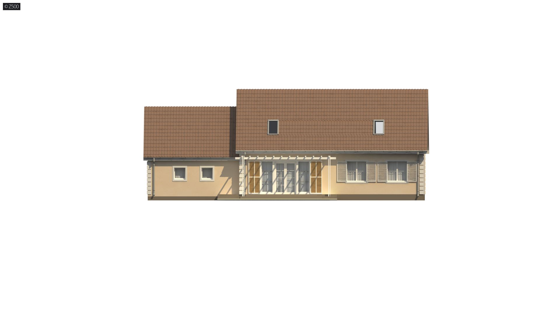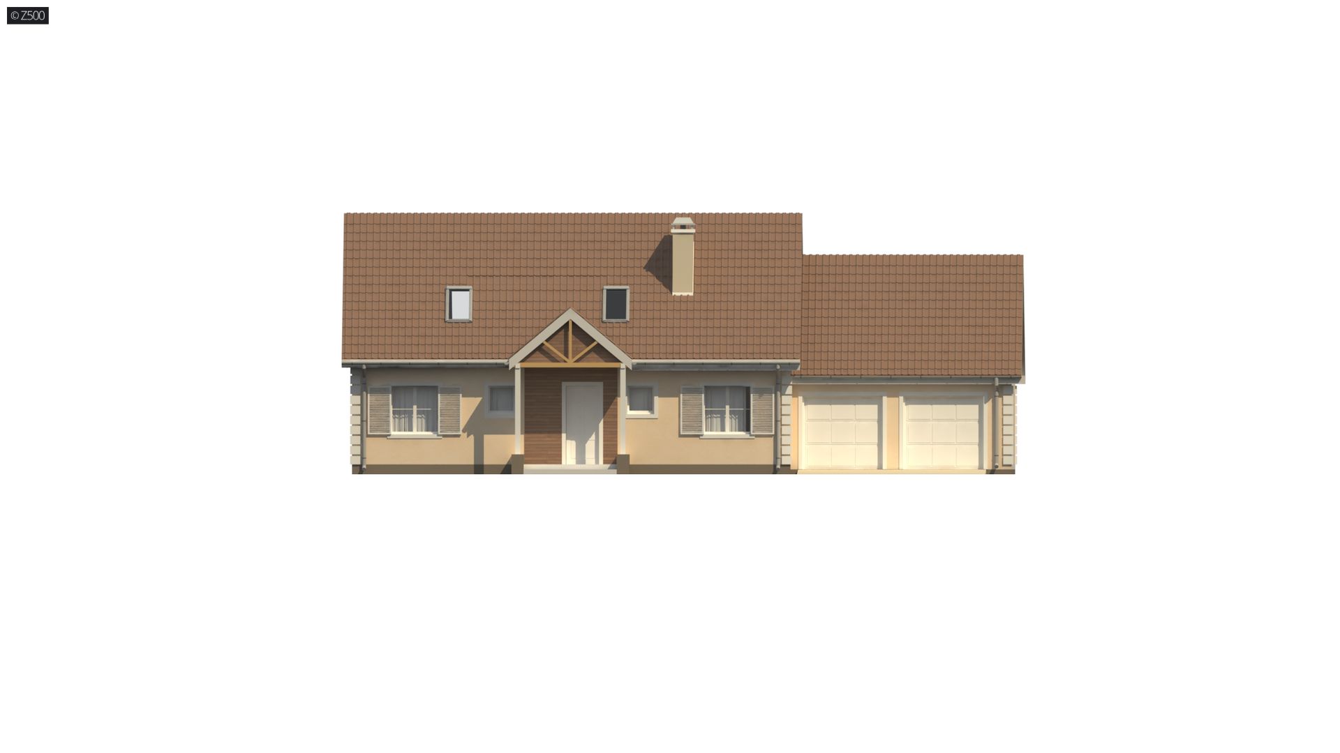 Projekt domu Z8 w wersji z garażem dwustanowiskowym po prawej stronie. Wariant ten posiada funkcjonalne poddasze użytkowe, gdzie zastoswano strop TERIVA.