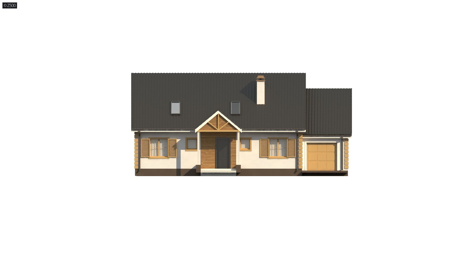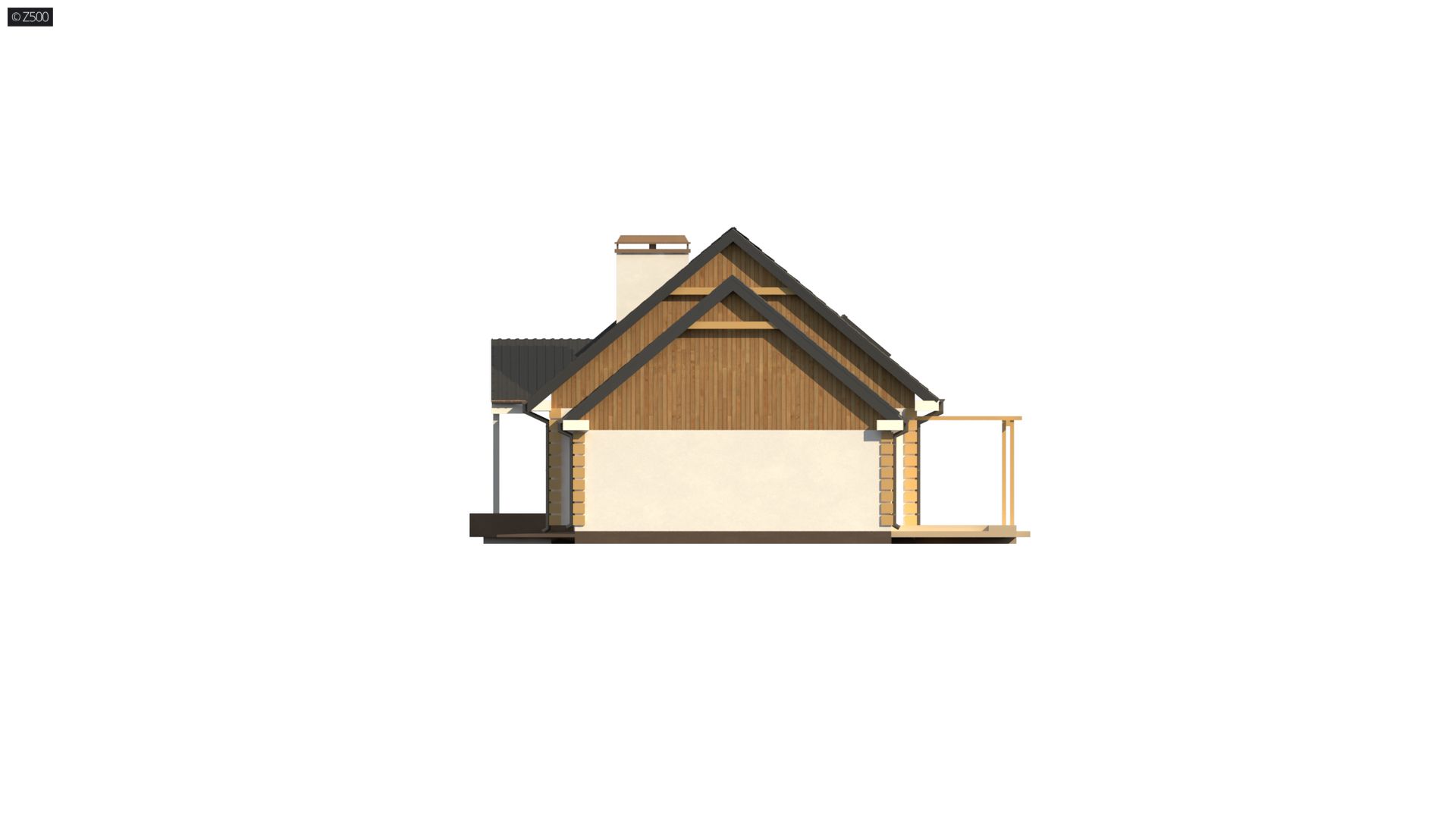 Projekt domu Z8 w wersji z dachem o konstrukcji drewnianej (prefabrykowane wiązary) nachylony pod kątem 40 stopni oraz garażem (24,75m2). Wariant ten posiada funkcjonalne poddasze użytkowe.