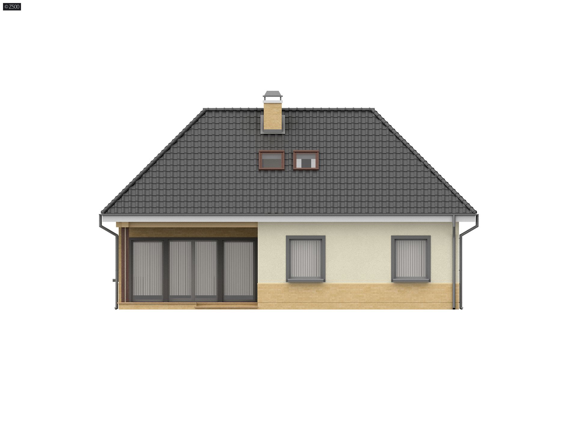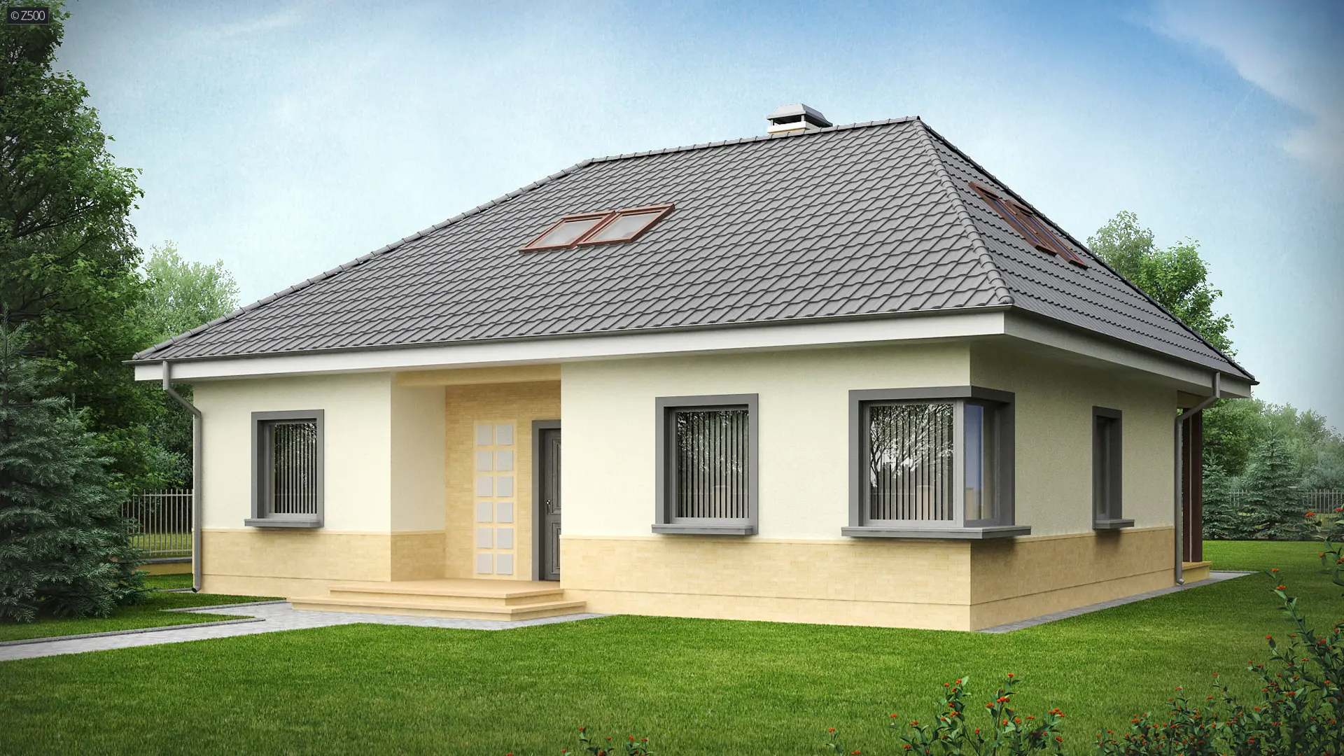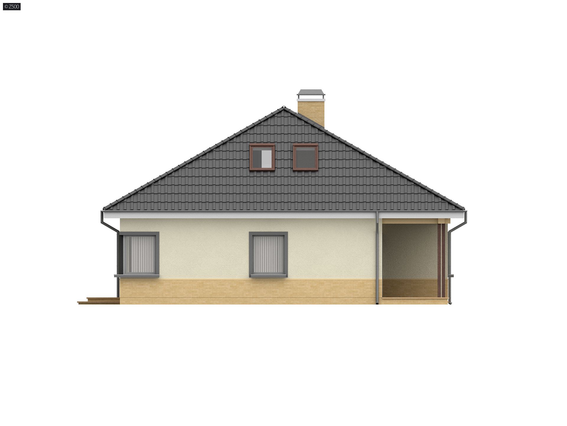 Projekt domu Z84 z poddaszem użytkowym stworzyliśmy na bazie parterowego projektu Z24. Prostokątny rzut, przykryty kopertowym dachem, współczesne wykończenie elewacji i funkcjonalne wnętrze, zaspokoją z nawiązką wymagania przyszłych mieszkańców.