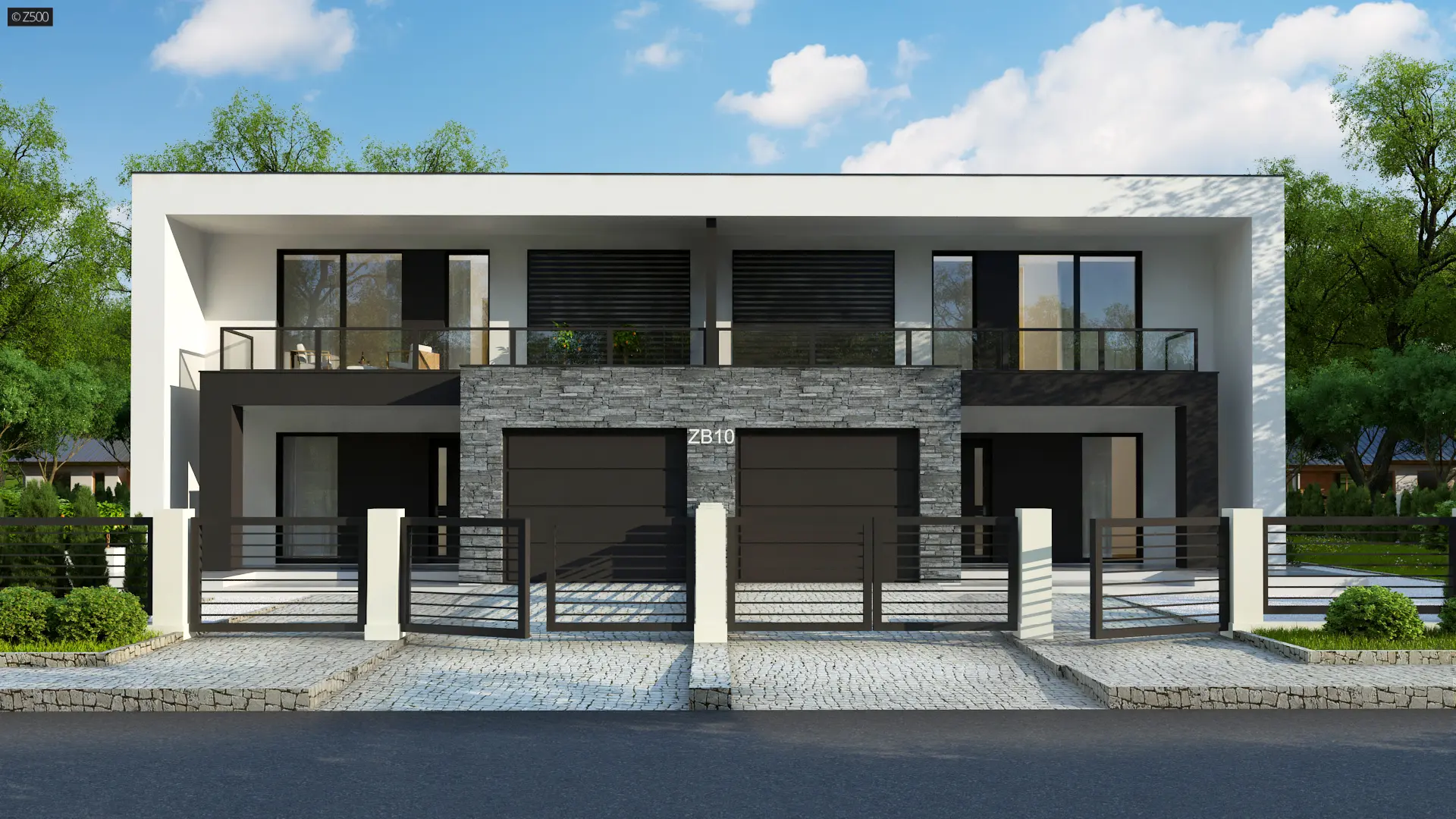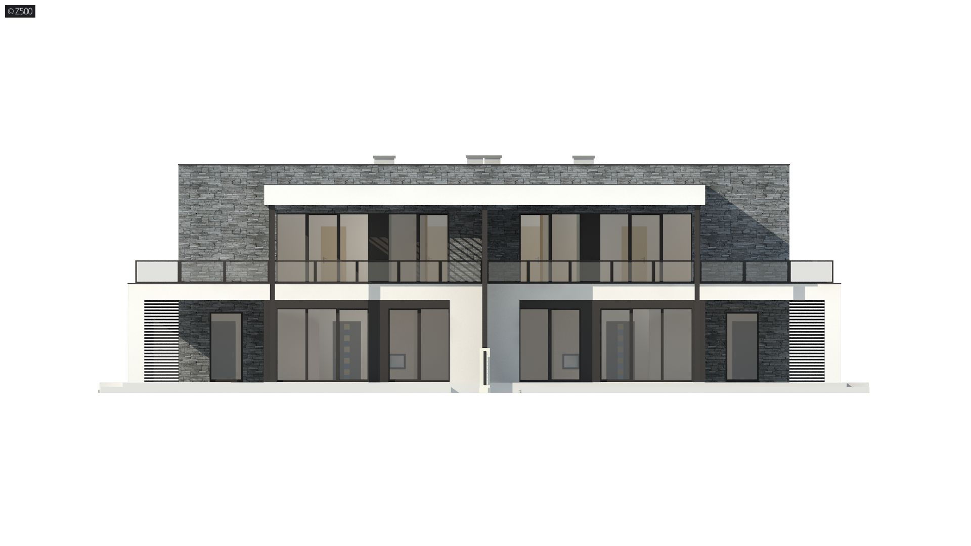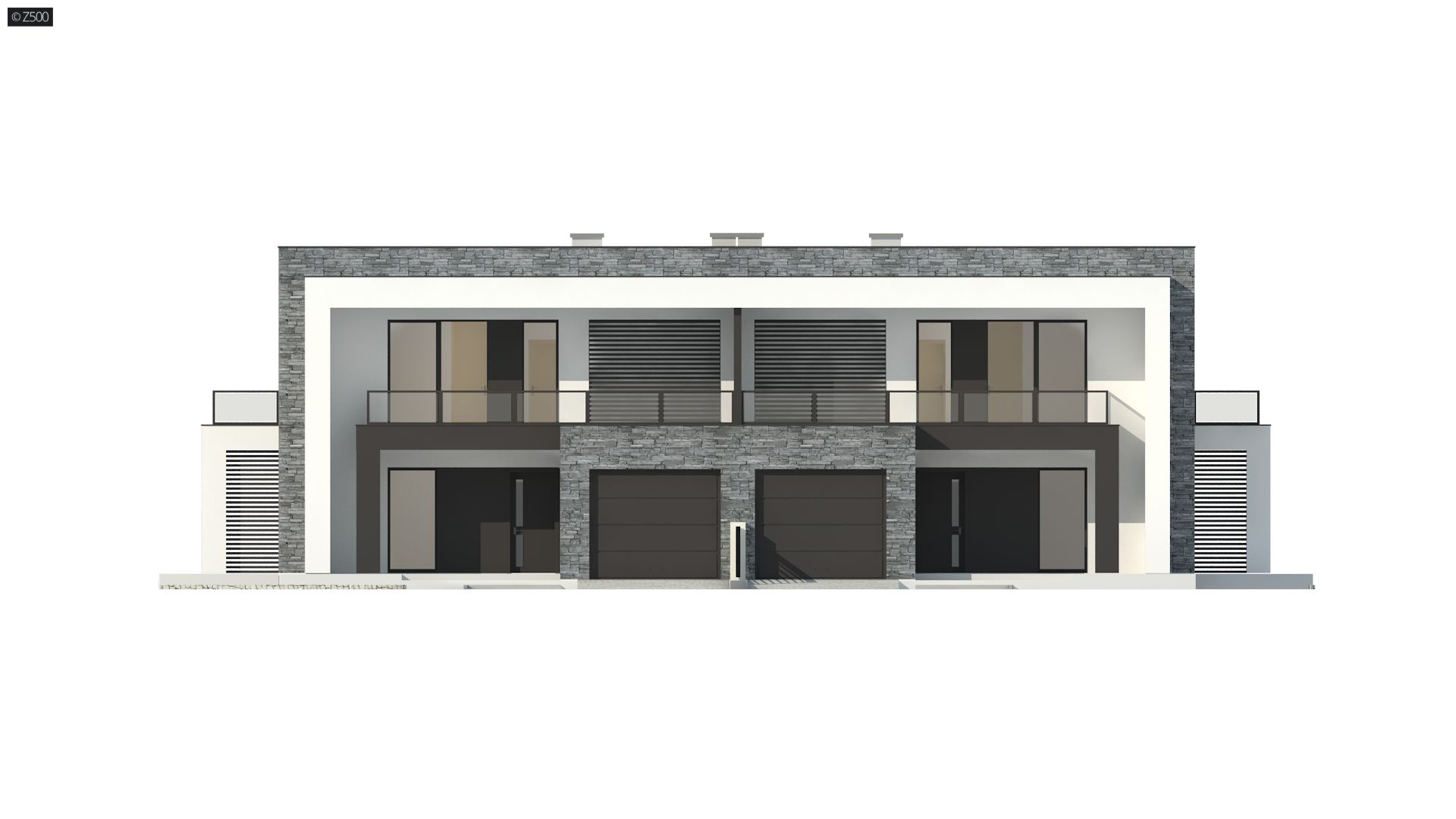 Nowoczesny, kubiczny, piętrowy projekt z płaskim dachem przeznaczony do zabudowy bliźniaczej, niepodpiwniczony, z garażem jednostanowiskowym, idealny dla 4-5-osobowej rodziny.