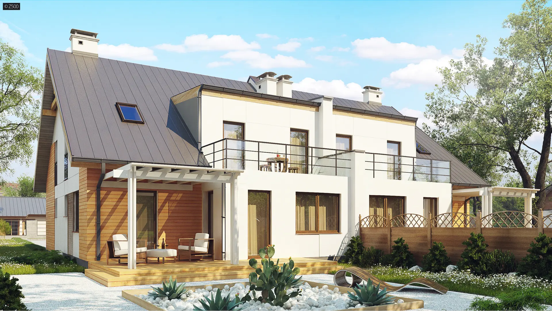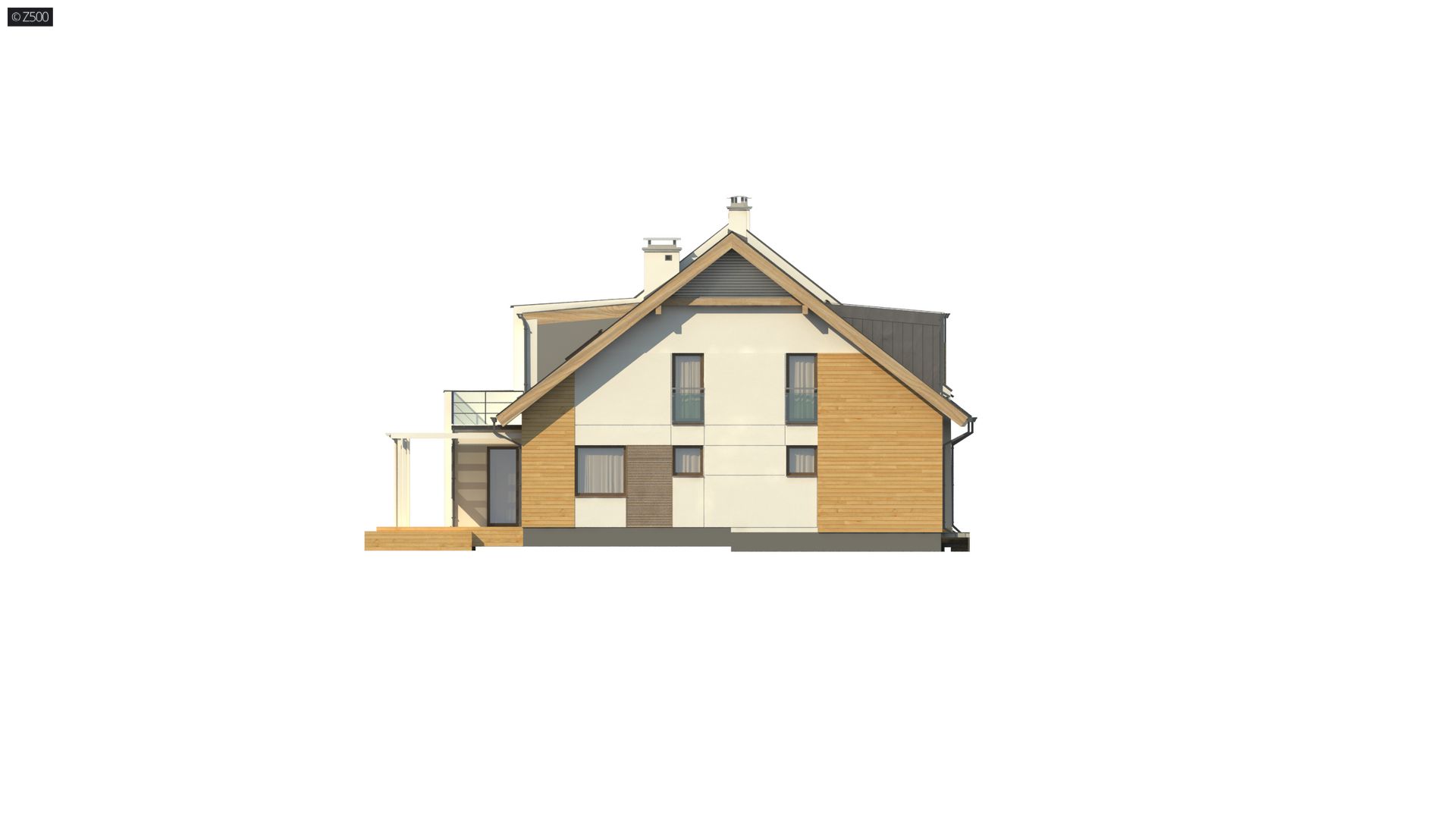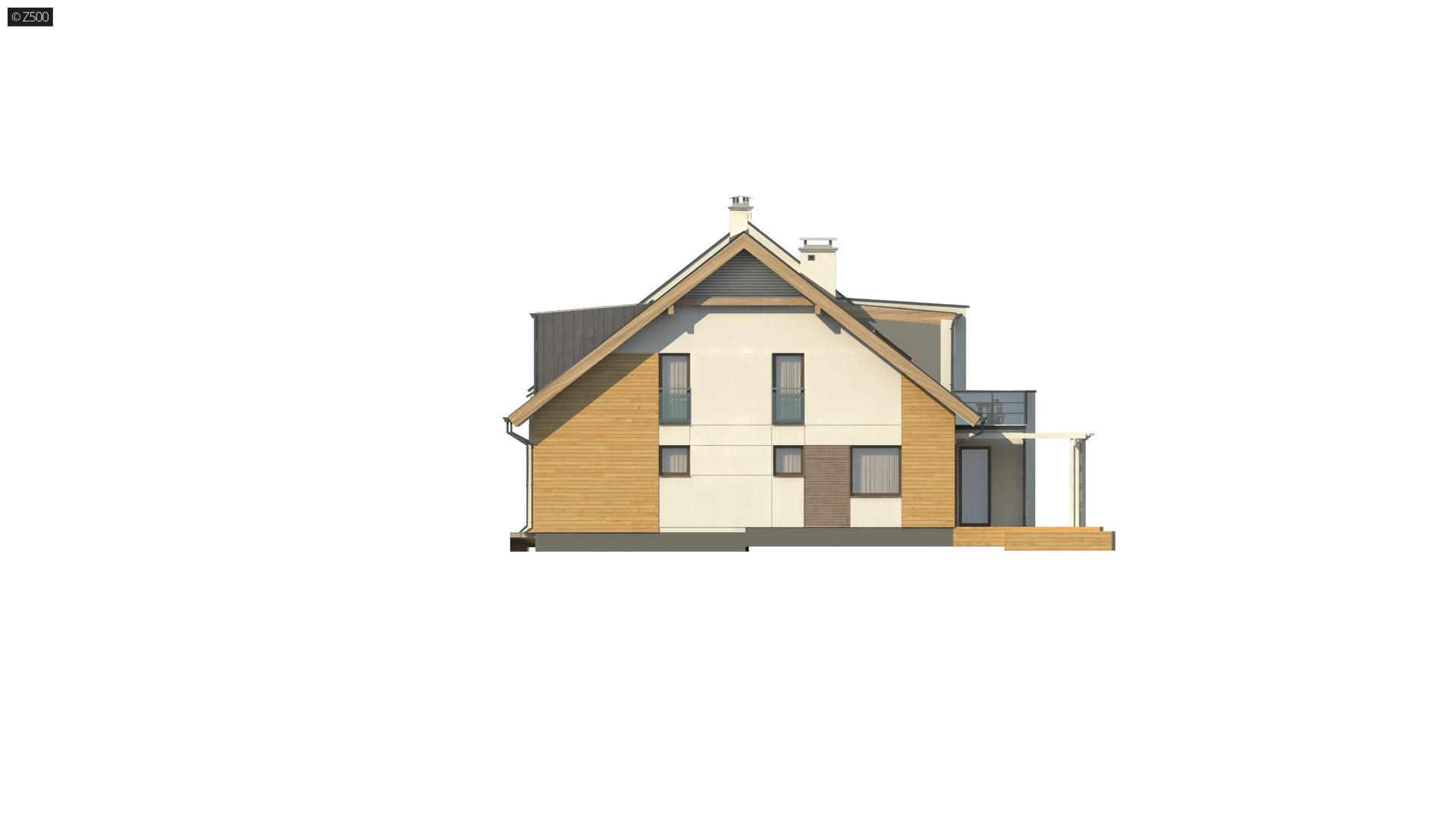 funkcjonalny projekt domu, z modnymi materiałami na elewacjach.