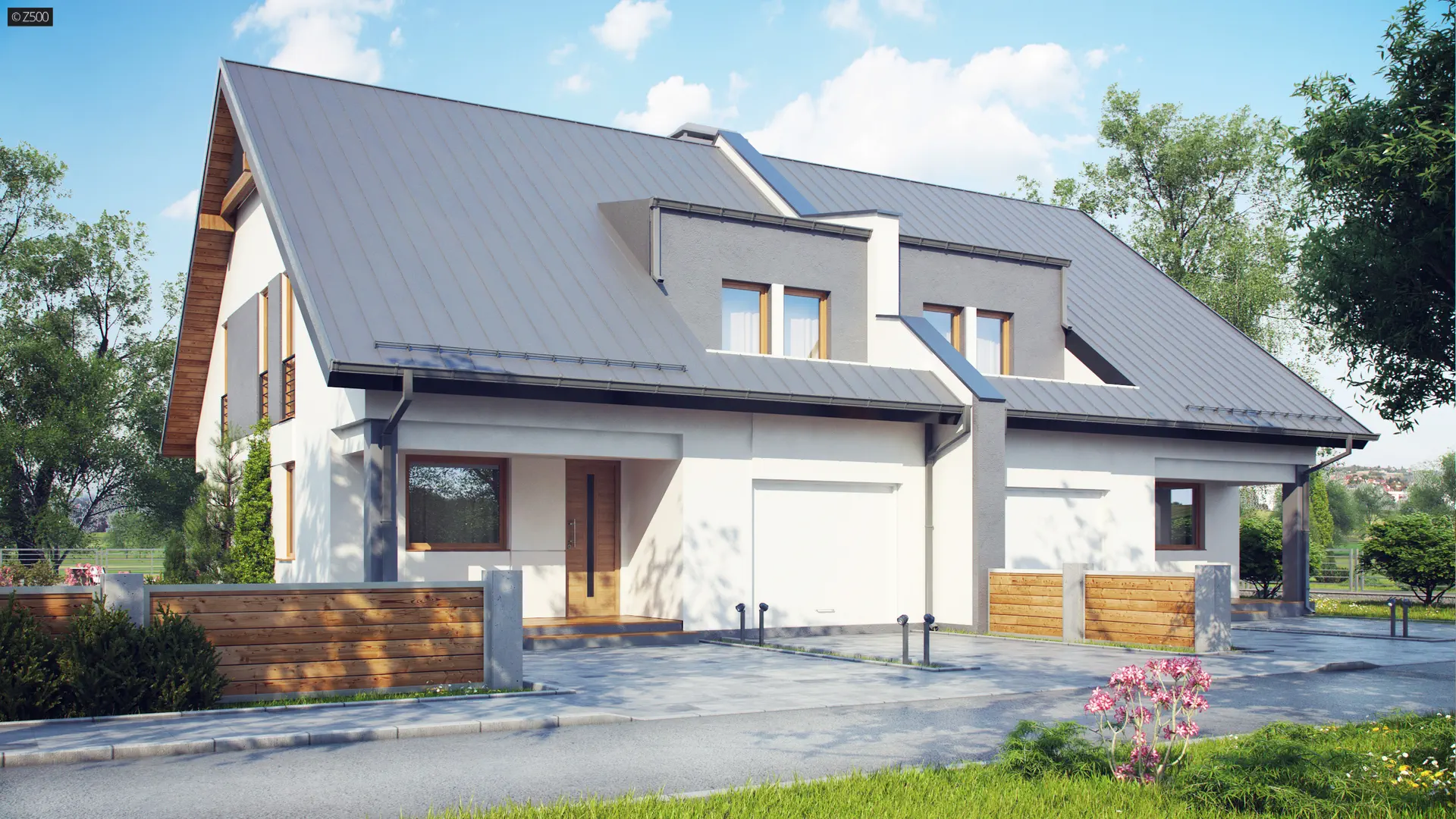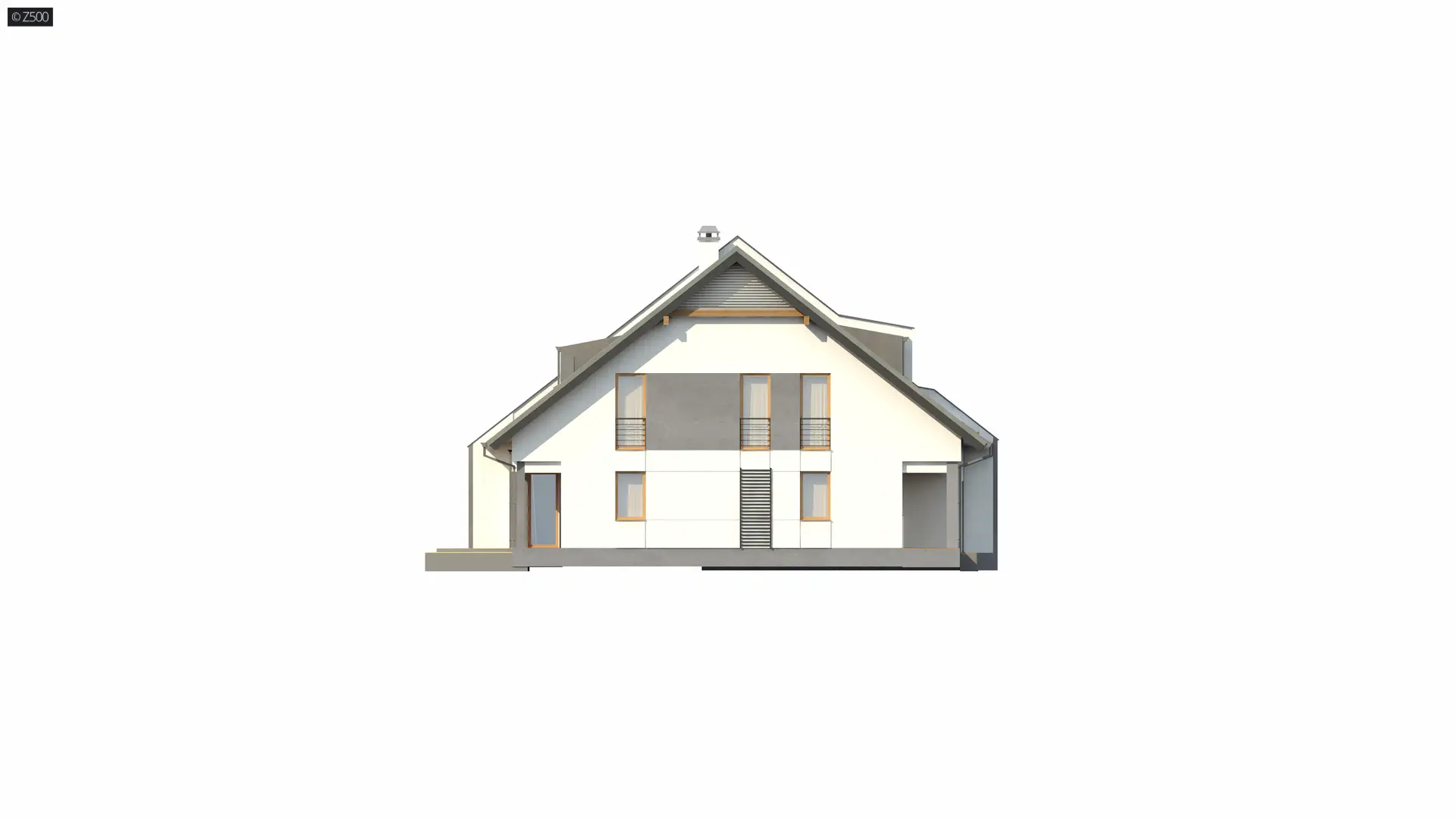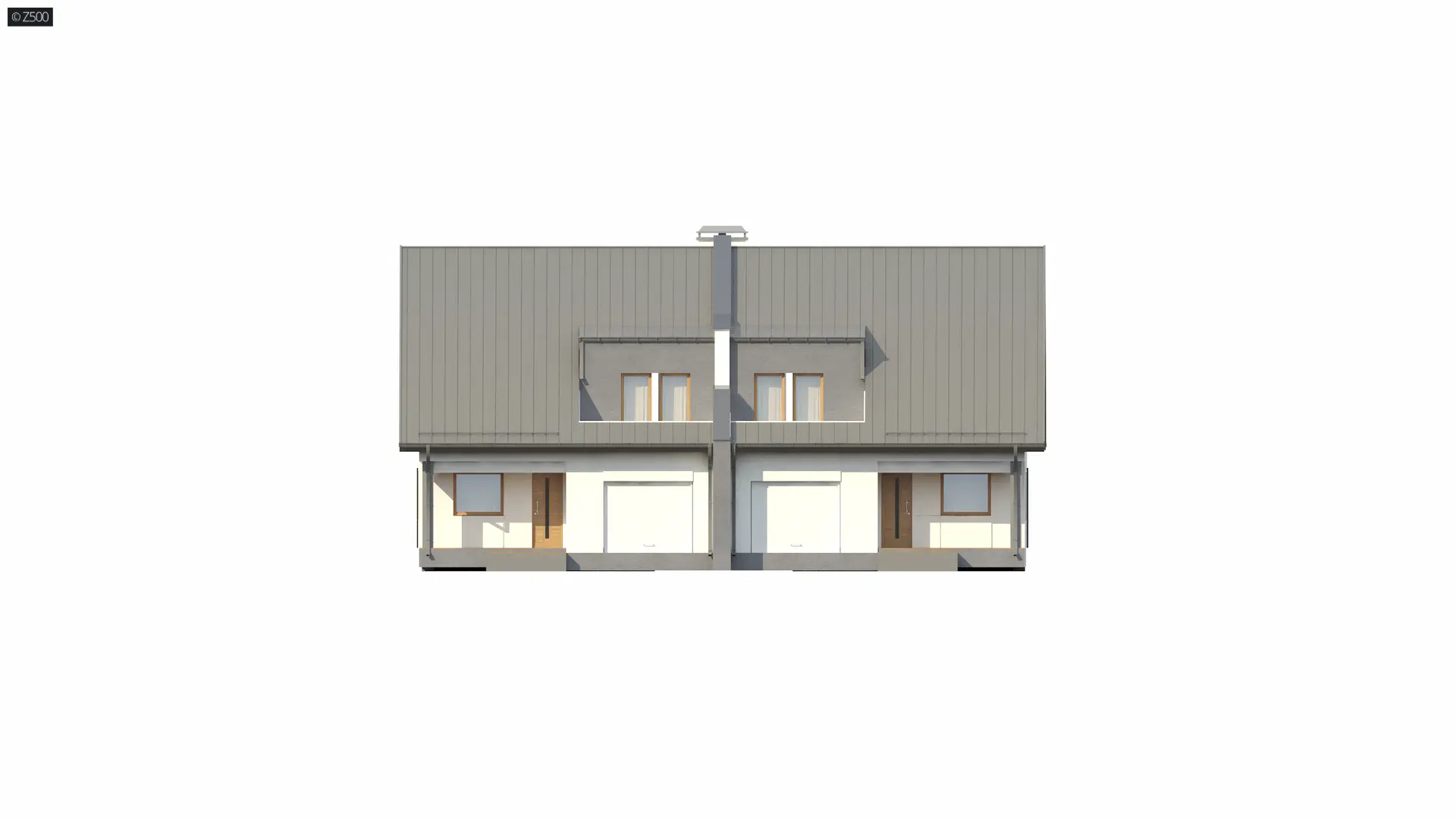 Zb15 to piętrowy dom z dwuspadowym dachem i jednostanowiskowym garażem do