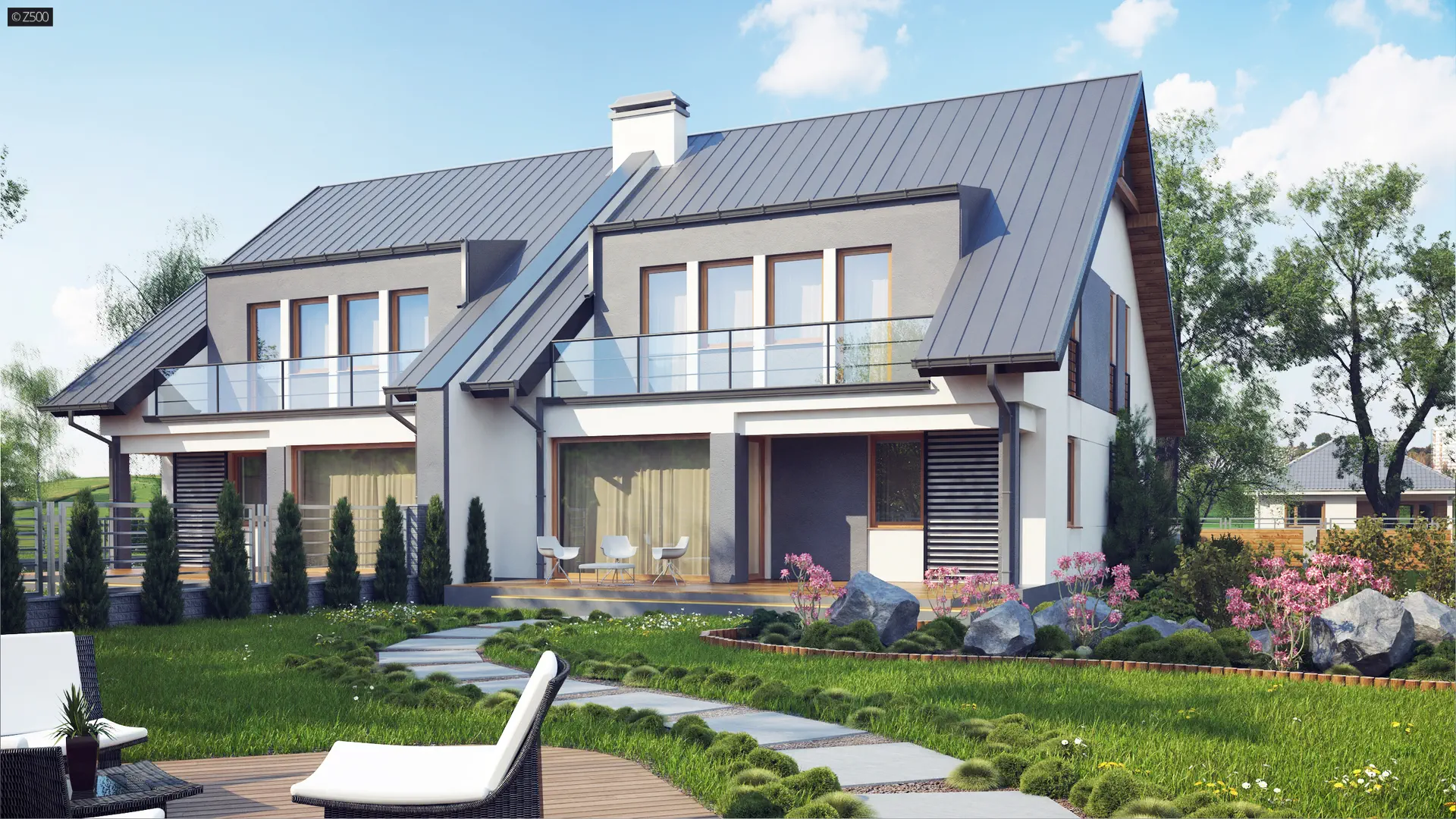 zabudowy bliźniaczej. Efektowne wykończenie elewacji, poprzez wkomponowanie nowoczesnych