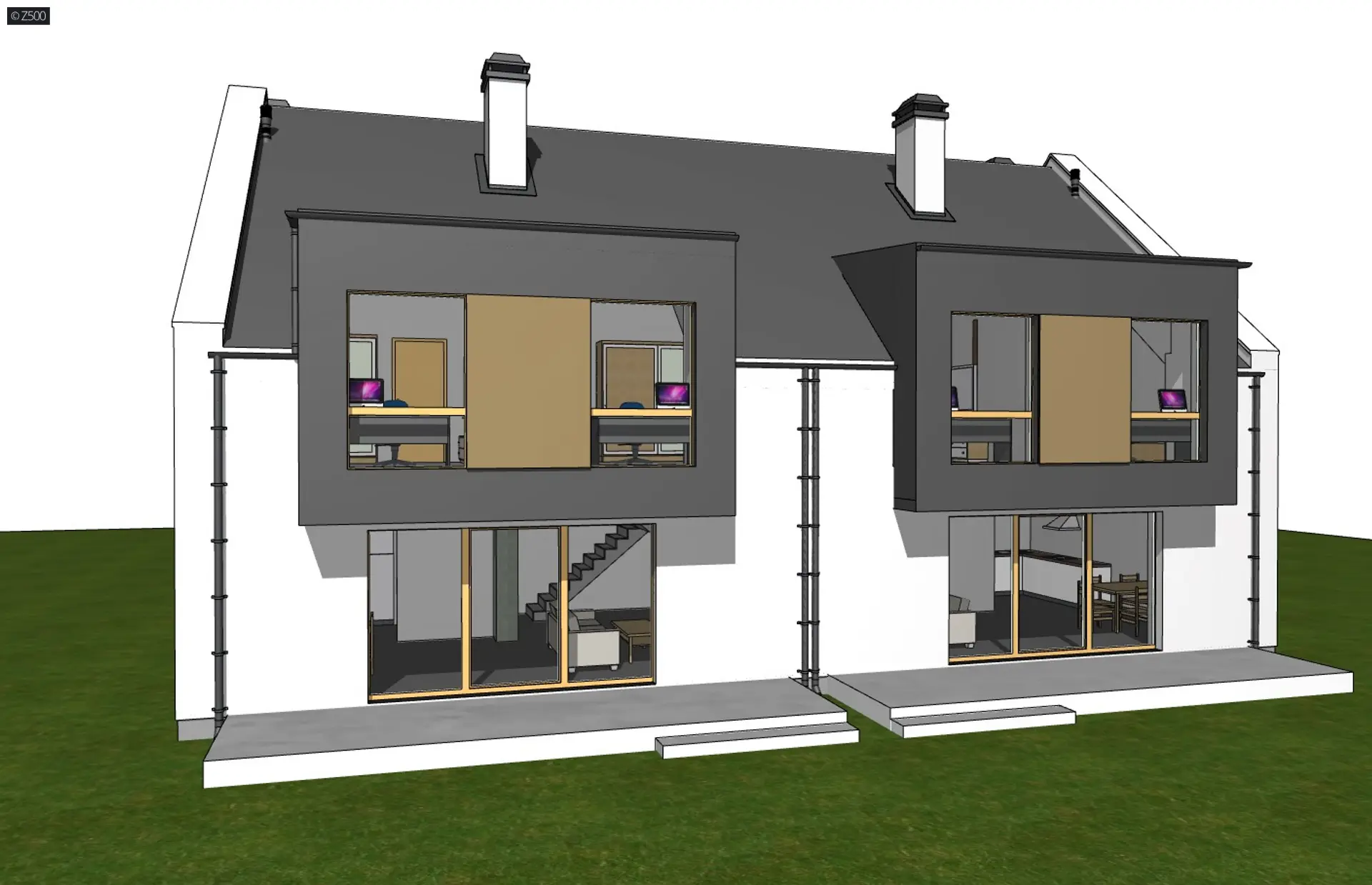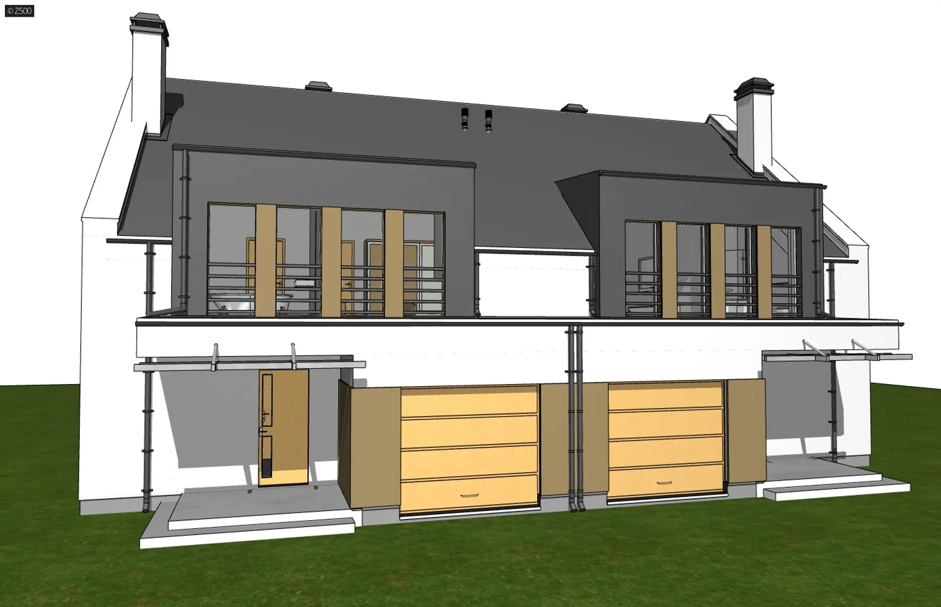 Dom jednorodzinny dwulokalowy w stylu współczesnym z dużymi przeszkleniami
