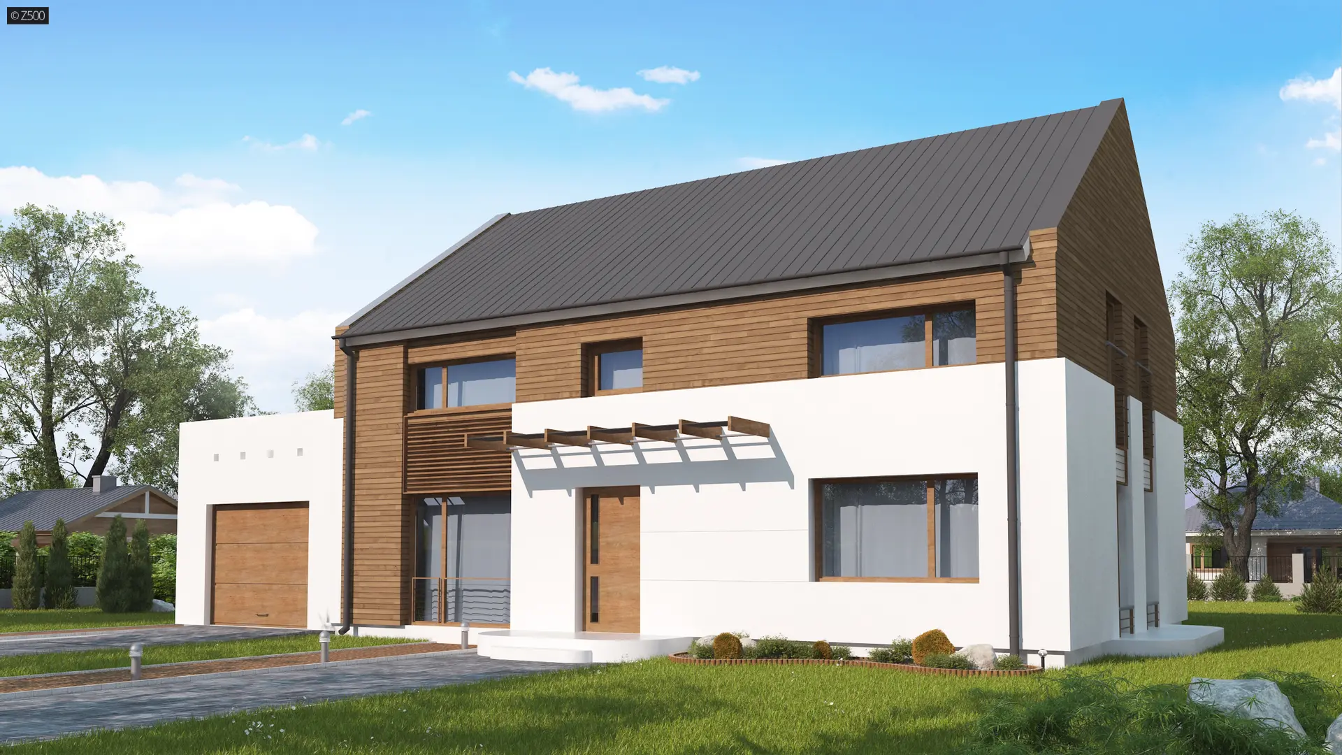 Podwariant z garażem po lewej stronie.