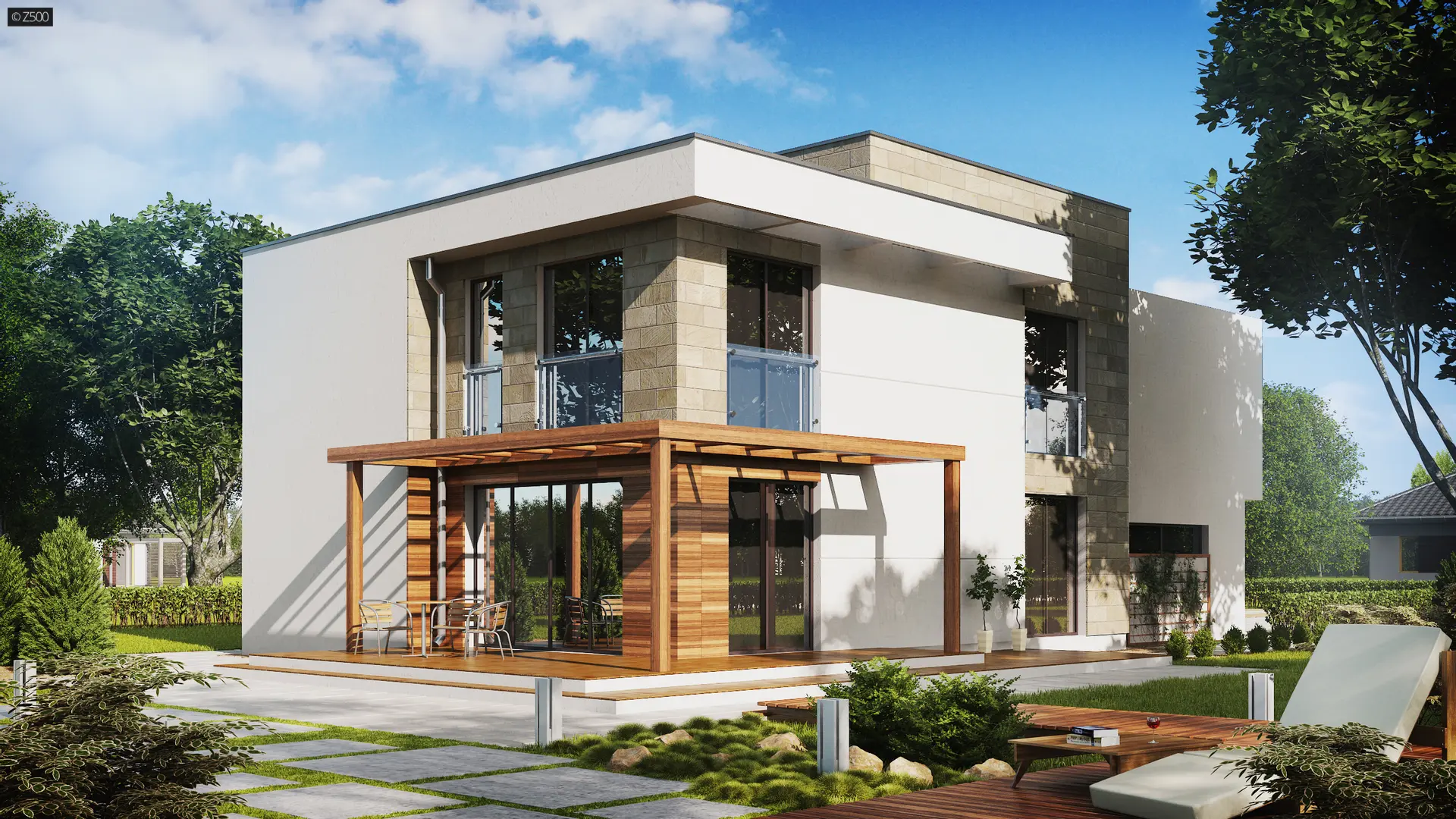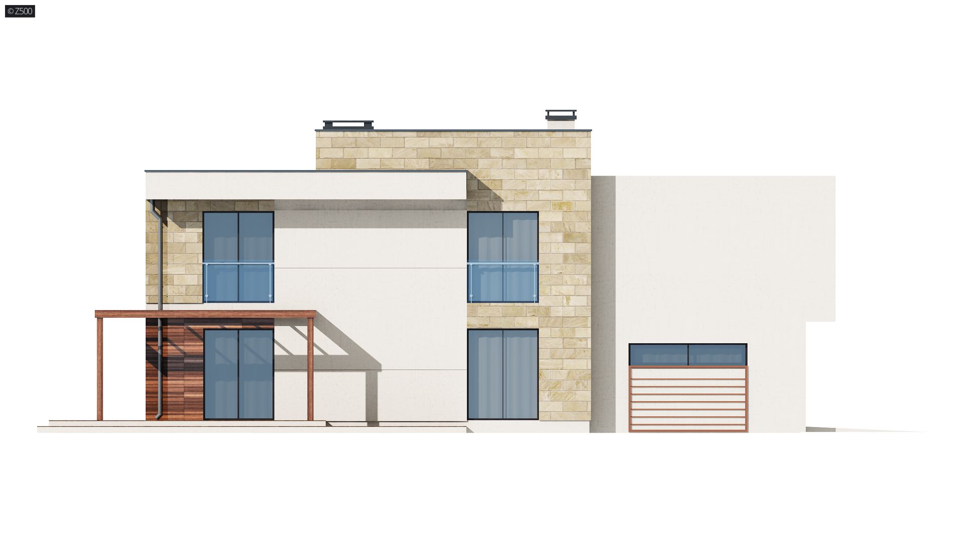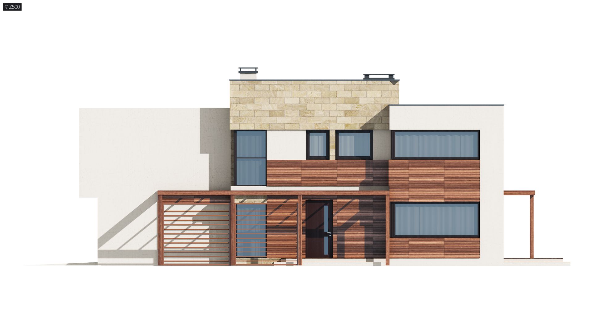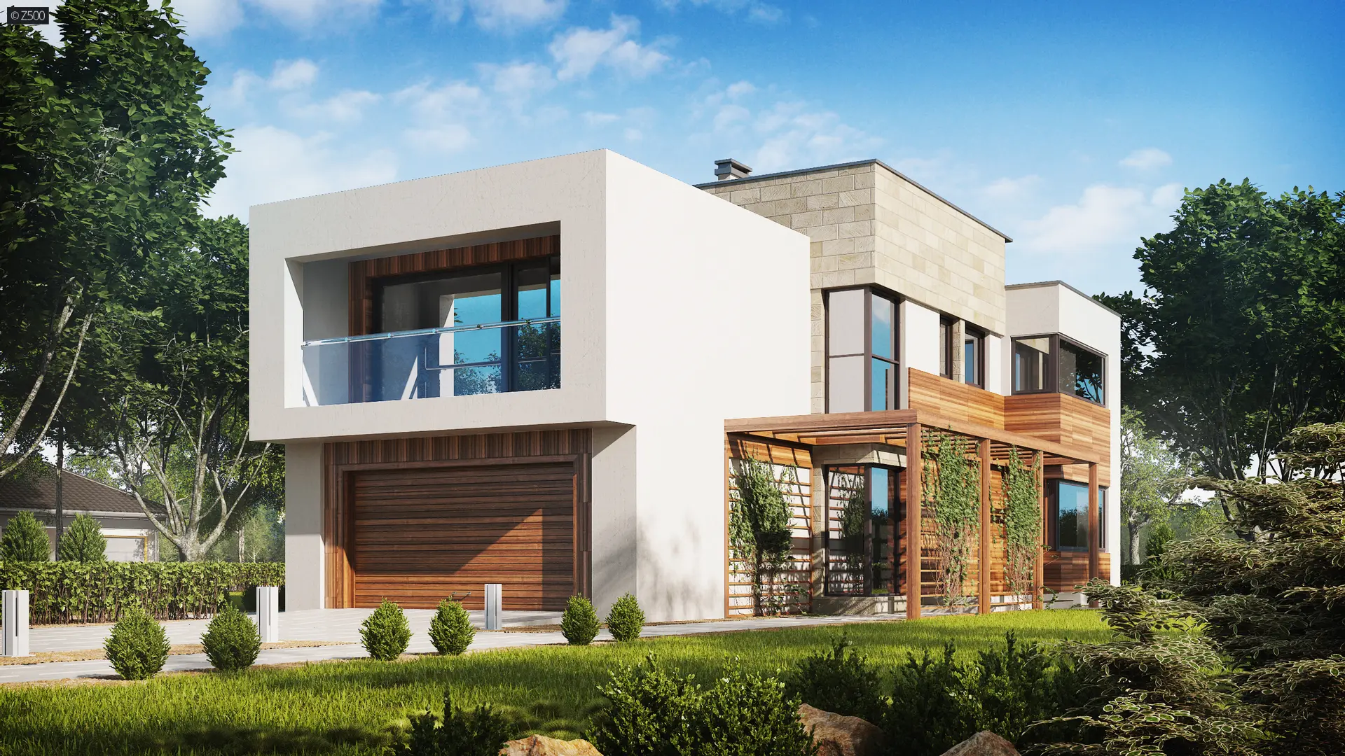 Zx114 to nowoczesna rezydencja dla rodziny z dziećmi oraz miejscem na 2 auta, w garażu połączonym bezpośrednio z domem. Wyróżnia się ciekawą architekturą z dużymi przeszkleniami oraz grą modnych materiałów na elewacjach.