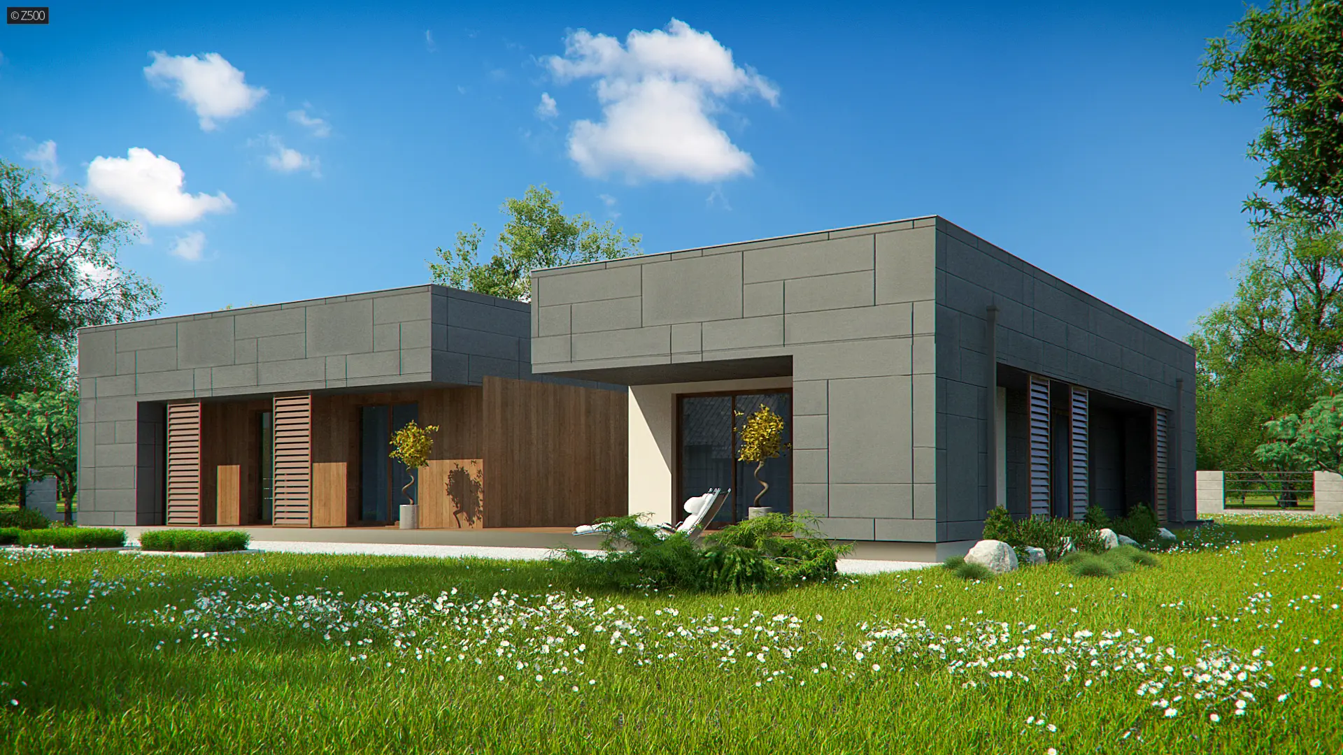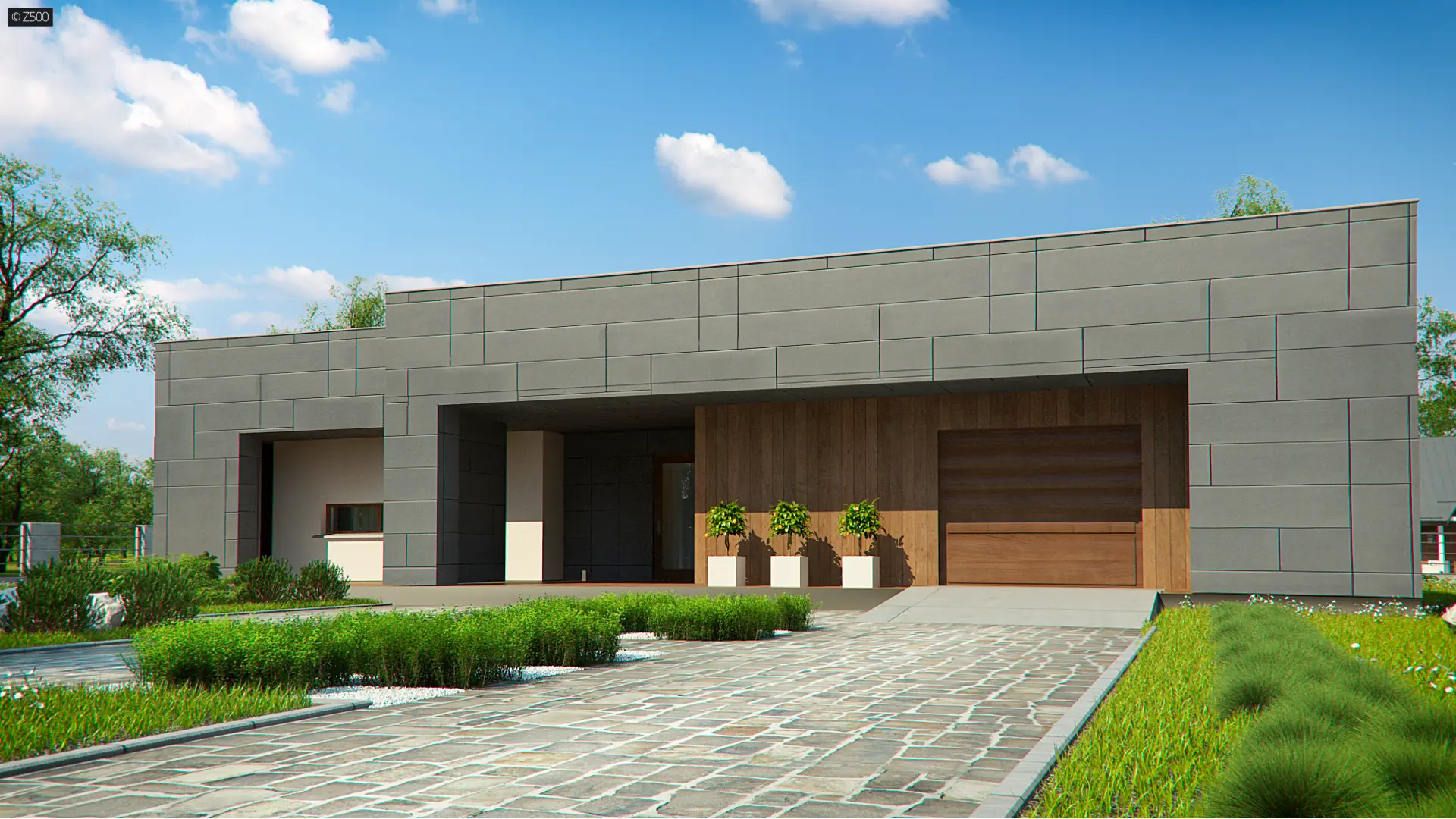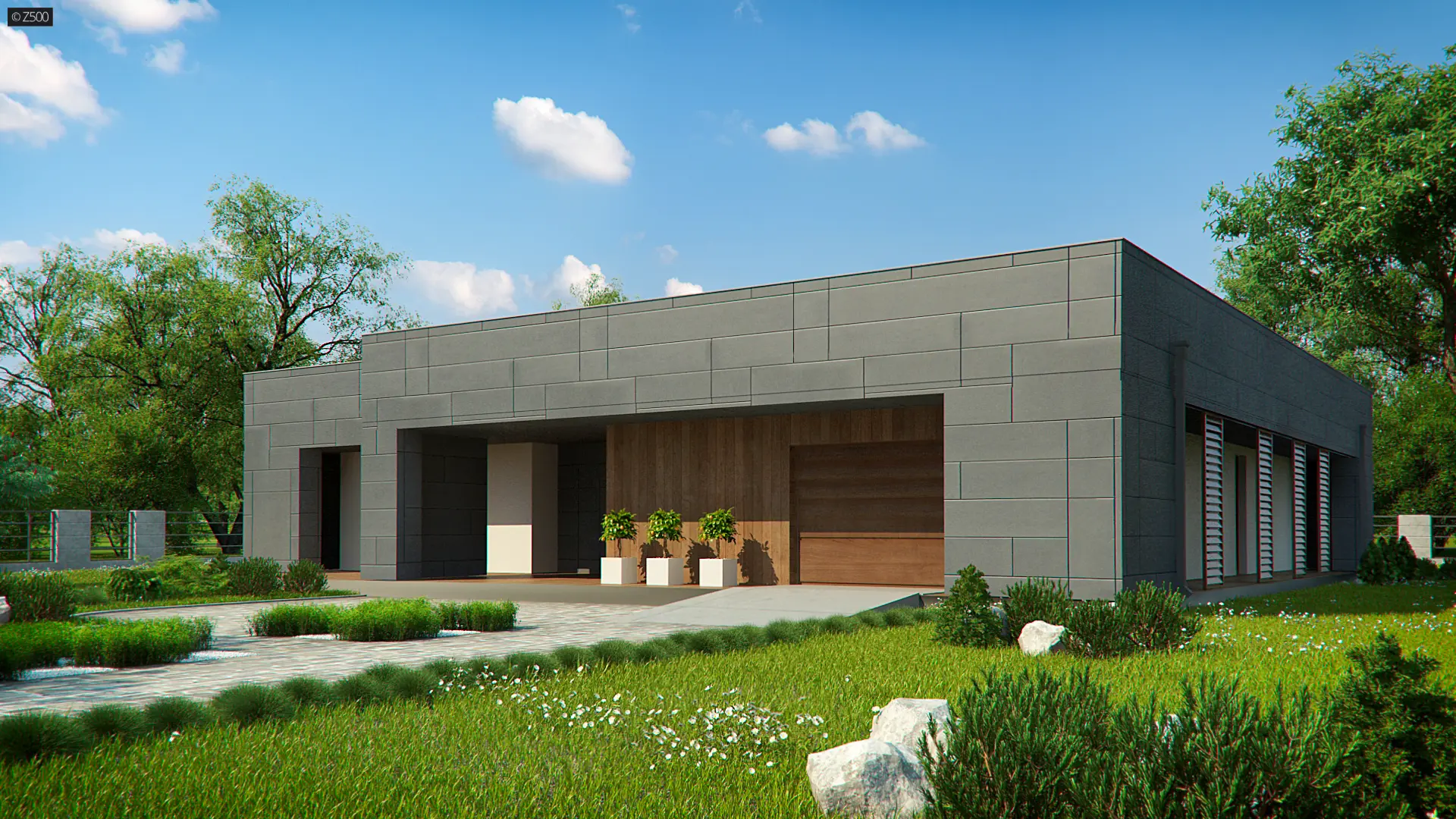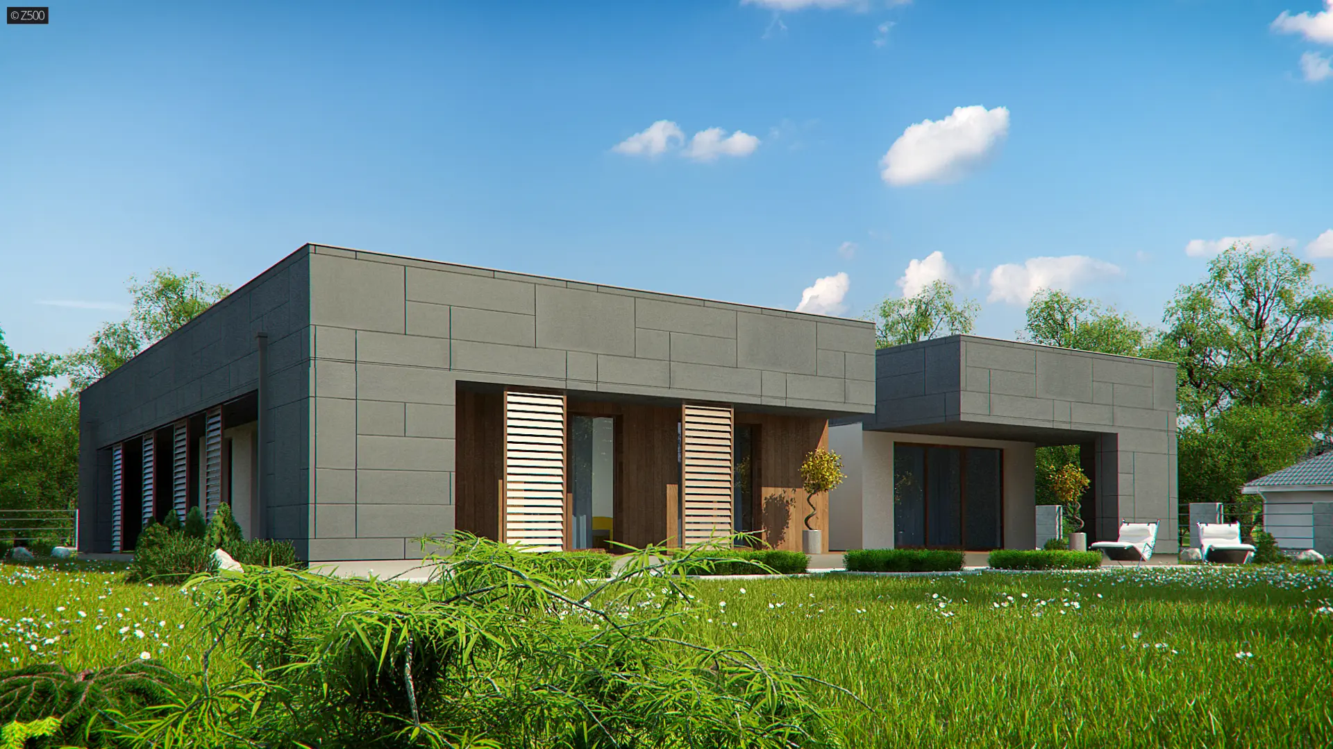 Architektonika z wierzchu przypomina nieco skorupę żółwia. Biały tynk w połączeniu z drewnem a na zewnątrz bryłę przykryto szarą płytę elewacyjną. Na „skorupie żółwiowego pancerza” można dodatkowo zamontować przesuwne rolety, które zasunięte ochronią nas przed wścibskim okiem sąsiada, a odsunięte dostarczą odpowiedniej ilości światła i dobrego nastroju. Zx118 będzie również długowieczny niczym żółw. Nacieszy się nim kilka pokoleń.