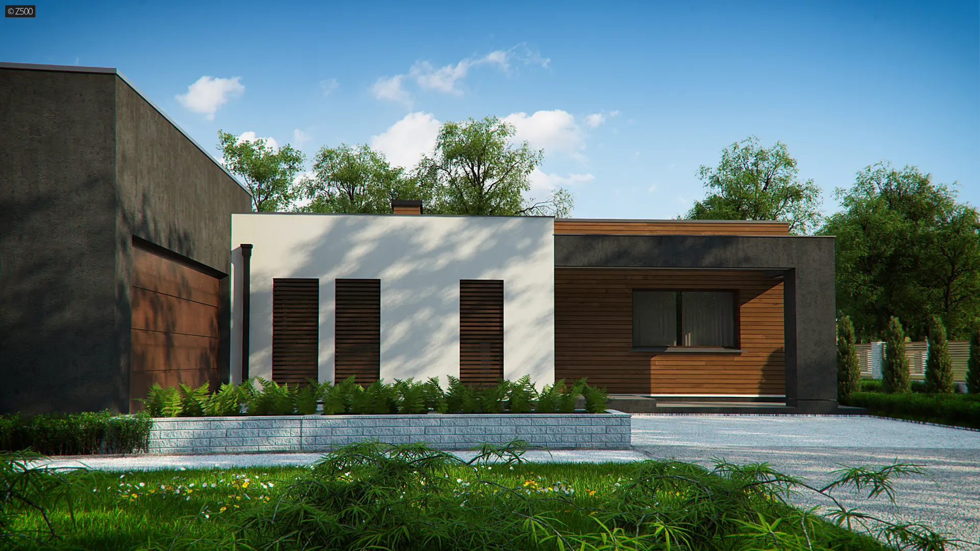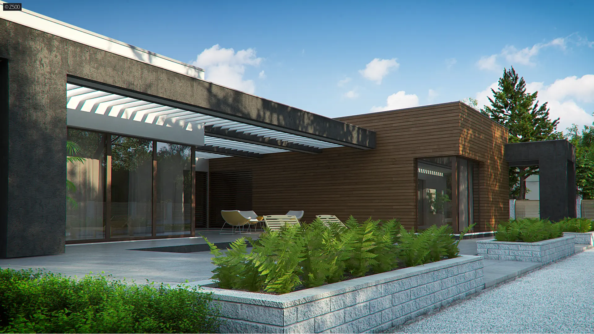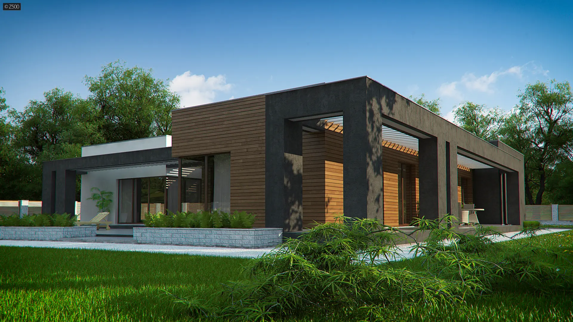 Projekt Zx128 to dom zaprojektowany na podobieństwo duszy jego Twórcy – nowoczesny, z mocno zarysowanym charakterem, napawający pięknem prostoty, kąśliwością symetrii i racjonalnym uporządkowaniem. Wewnątrz zaś, mocno bijące, gorące serce zielonego atrium!