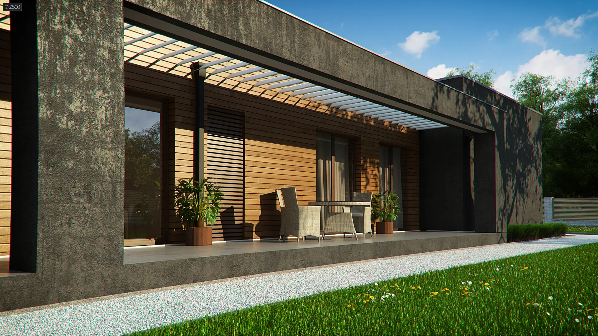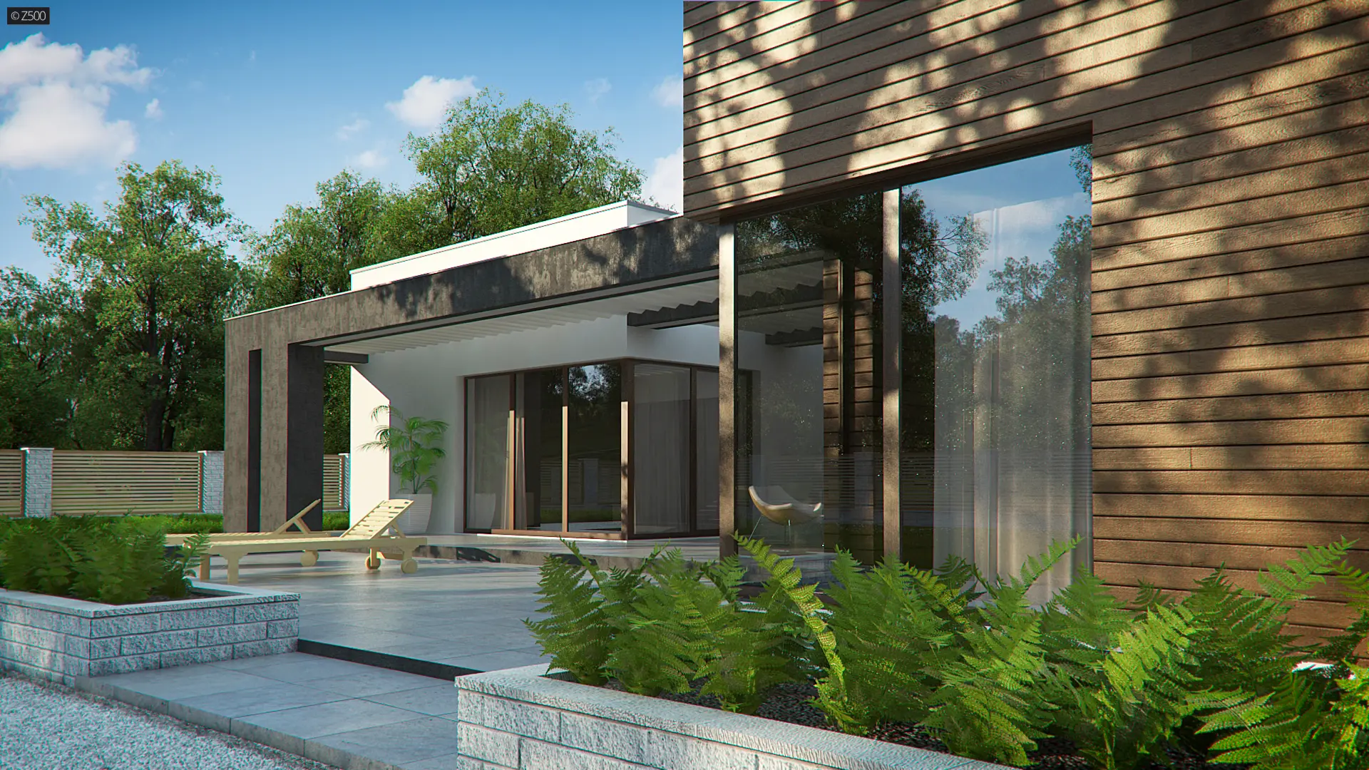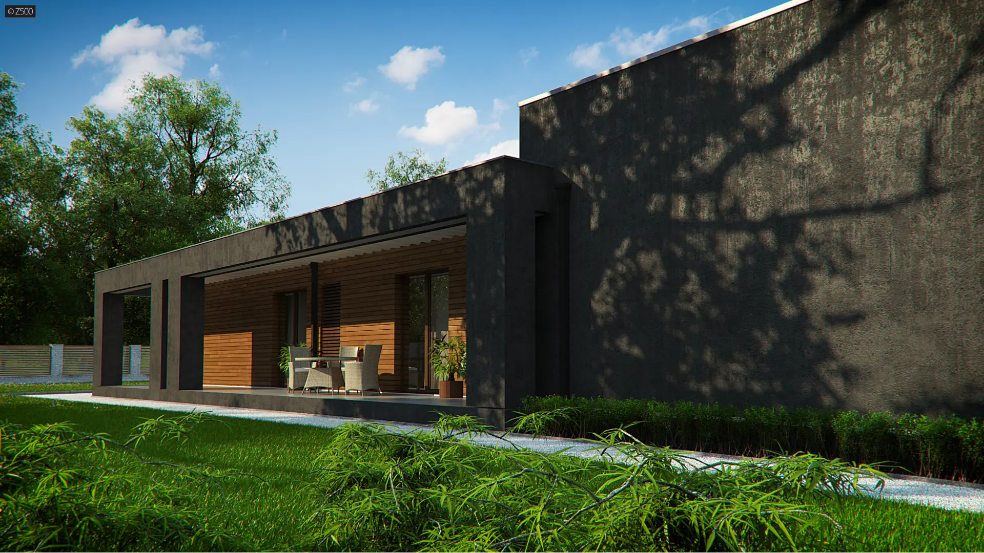 Projekt Zx128 to dom zaprojektowany na podobieństwo duszy jego Twórcy – nowoczesny, z mocno zarysowanym charakterem, napawający pięknem prostoty, kąśliwością symetrii i racjonalnym uporządkowaniem. Wewnątrz zaś, mocno bijące, gorące serce zielonego atrium!