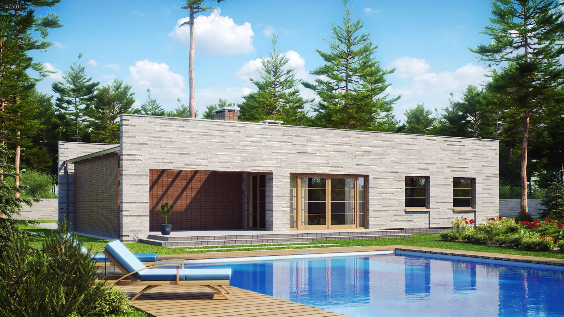 Projekt Zx13 to dom parterowy w stylu postmodernistycznym. Prosta, minimalistyczna forma budynku w połączeniu z jasnym kolorem i drewnianymi okładzinami elewacji stanowią o jego elegancji. Garaż w bryle oraz układ funkcjonalny to kolejne atuty tego projektu.