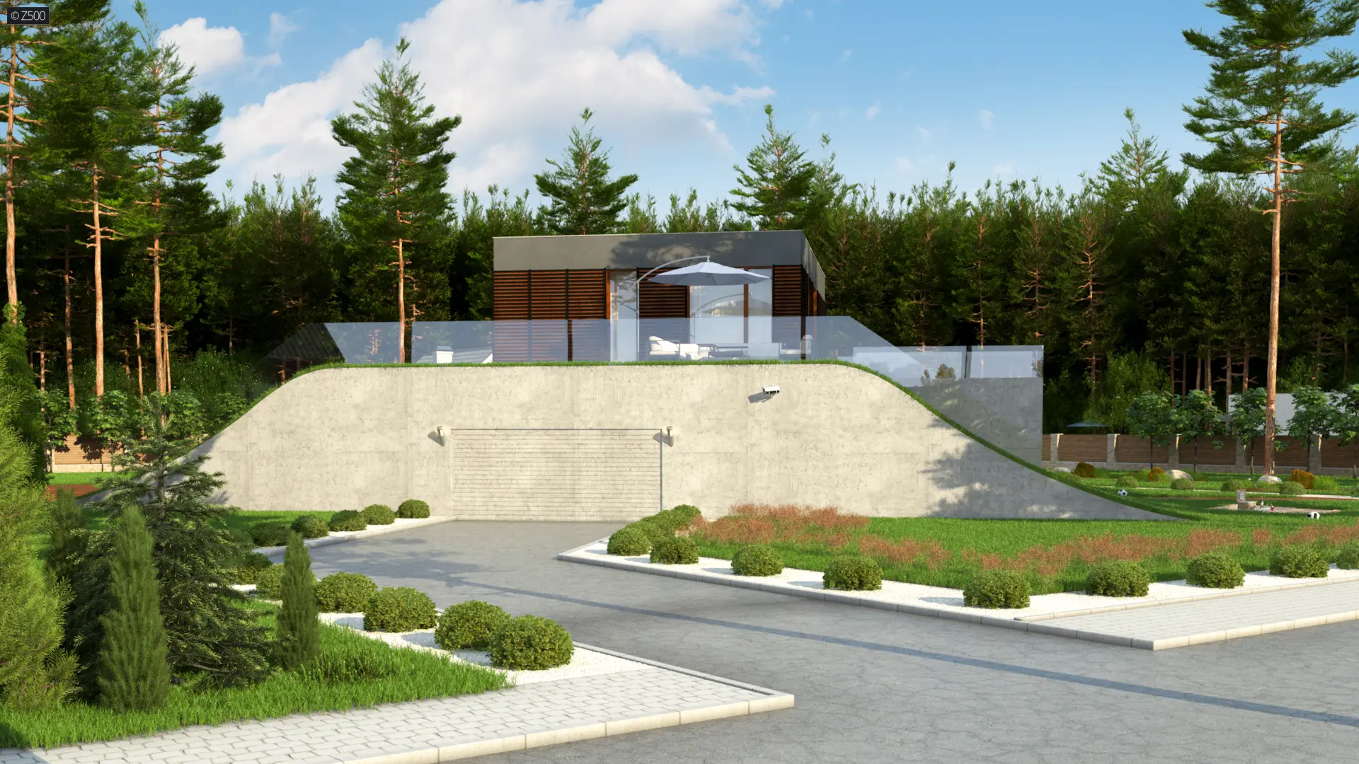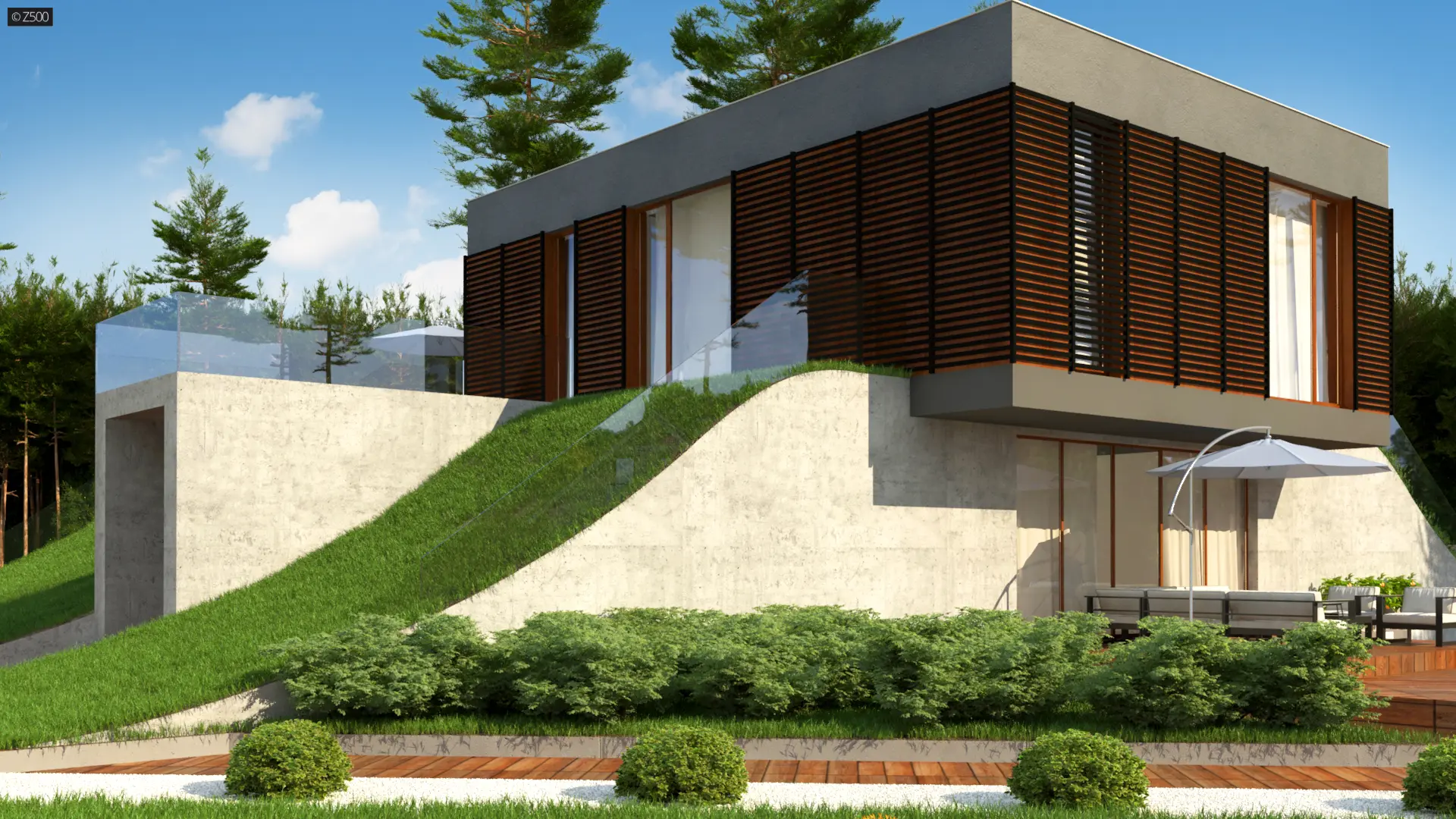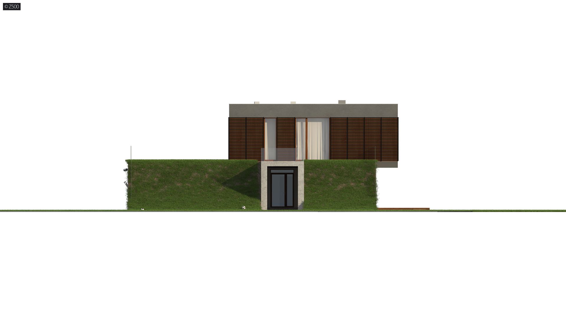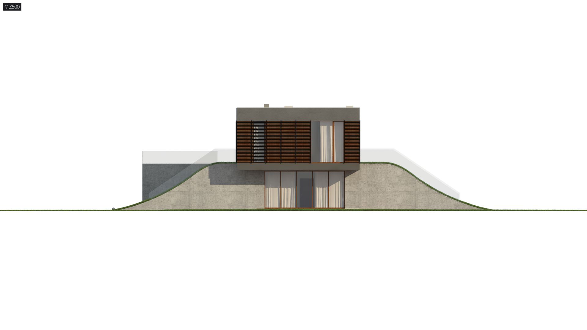 Zx170 to kolejny projekt Z500 nowoczesnego domu z płaskim dachem i powiększającą czynną biologicznie powierzchnią działki.