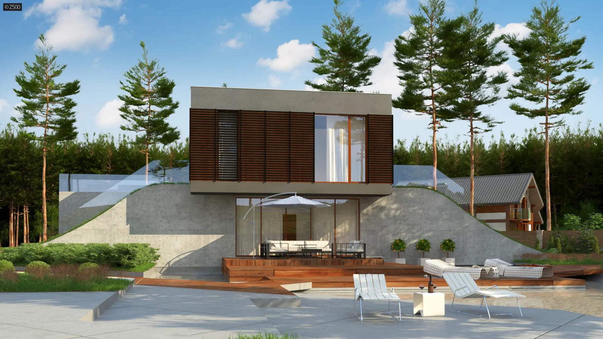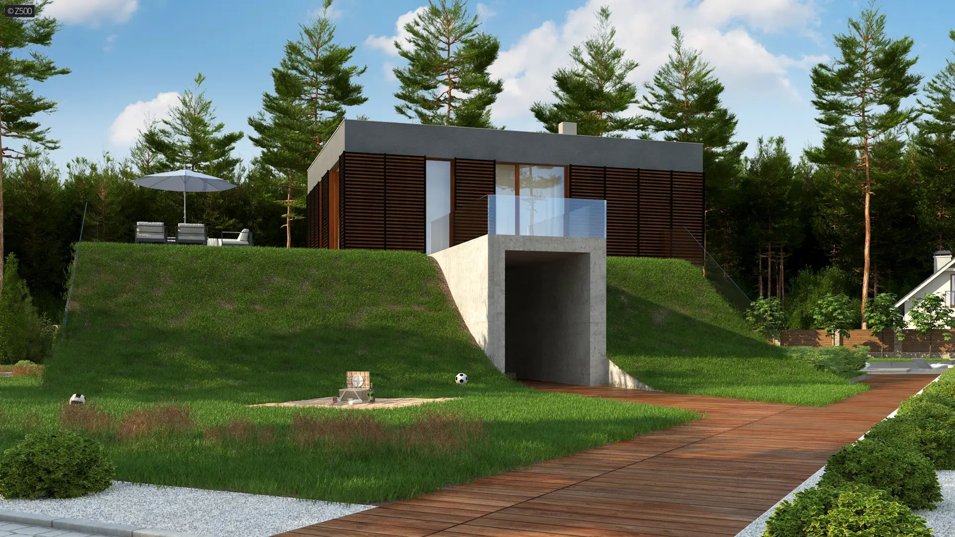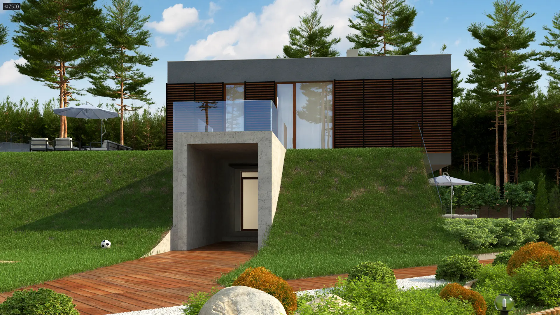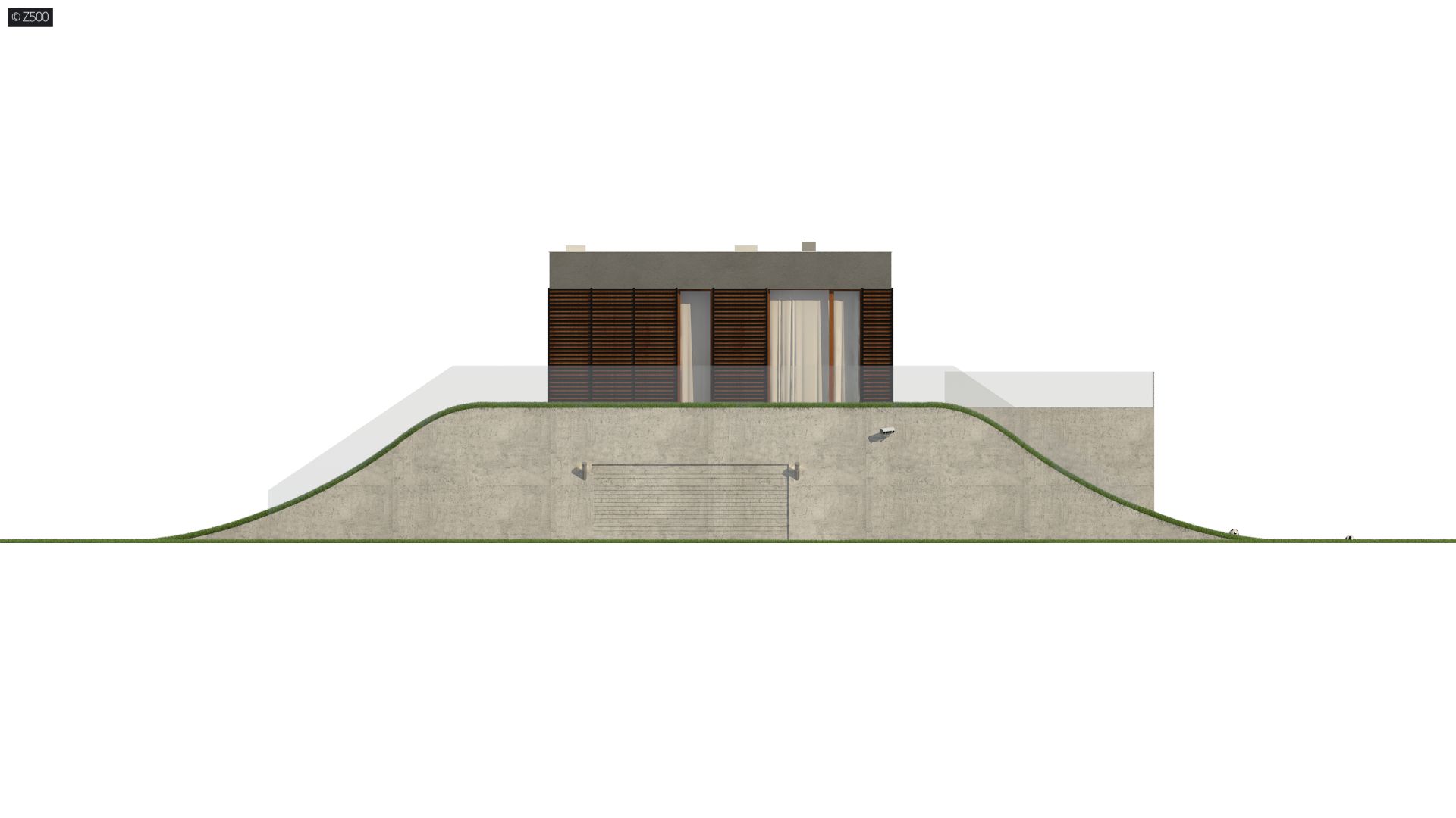 Zx170 to kolejny projekt Z500 nowoczesnego domu z płaskim dachem i powiększającą czynną biologicznie powierzchnią działki.