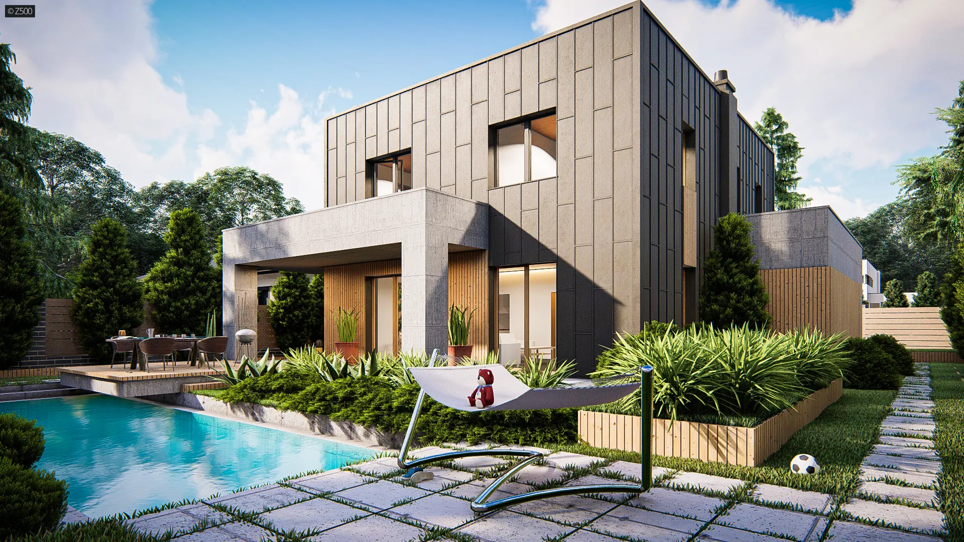 Piętrowy dom z płaskim dachem, 4 pokojami, master bedroom oraz garażem