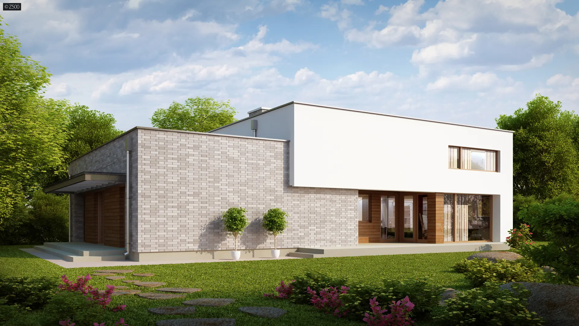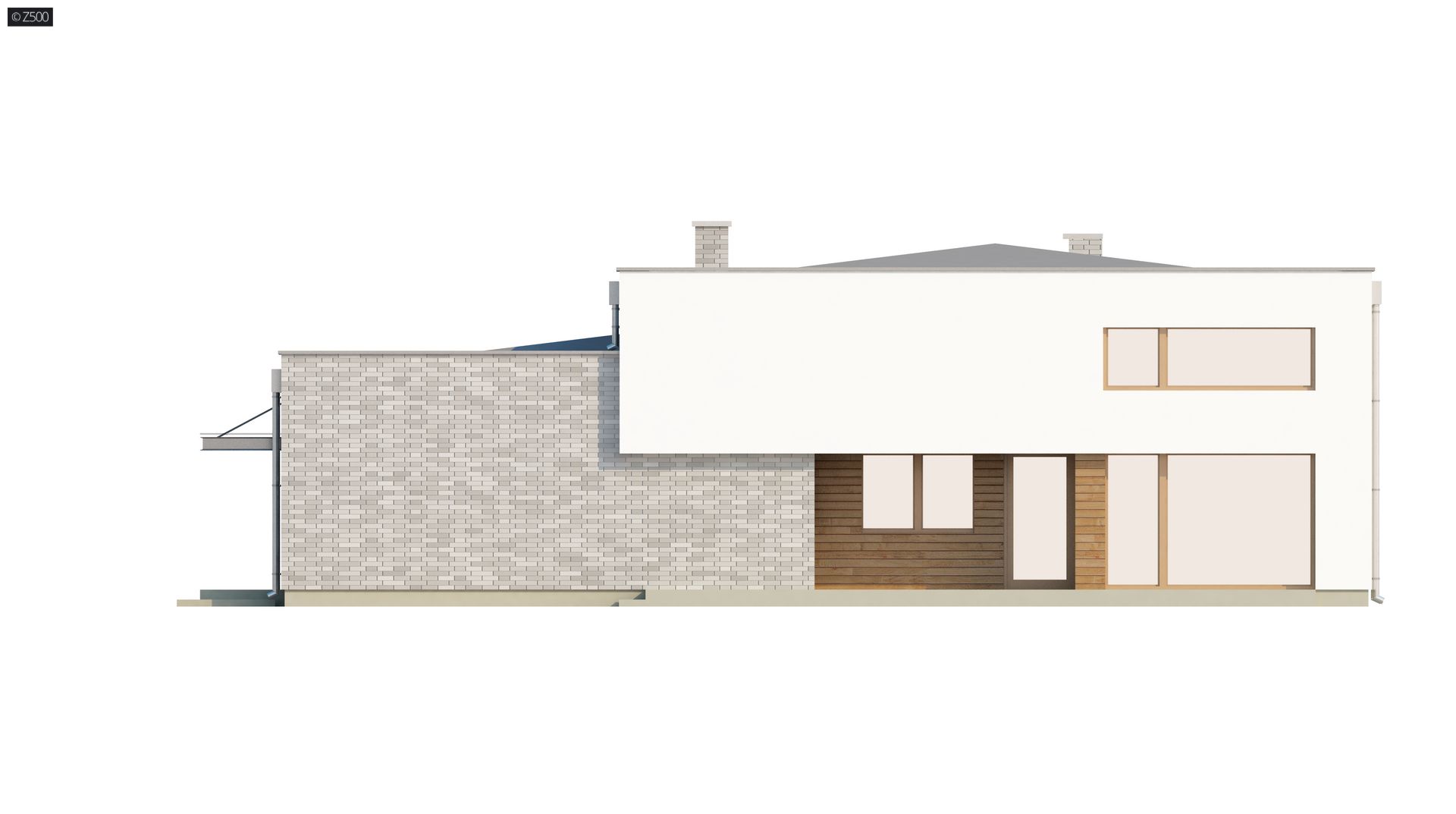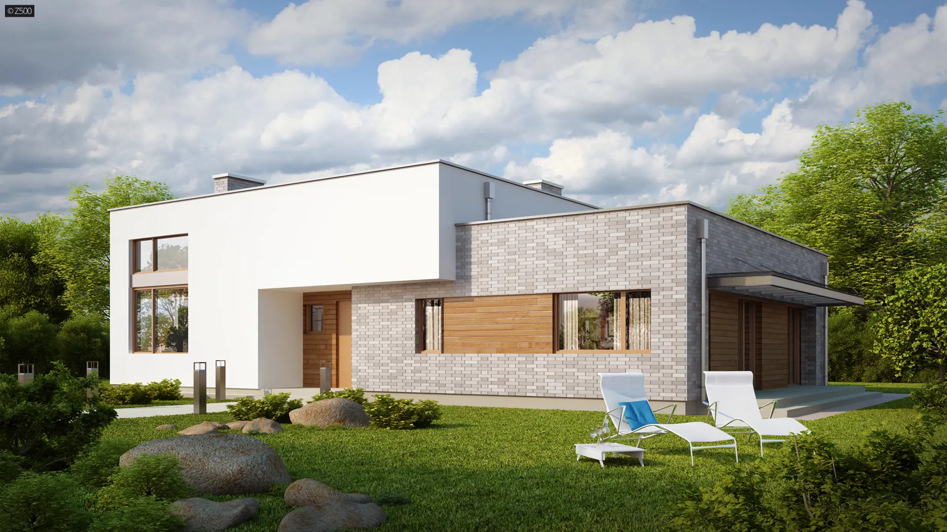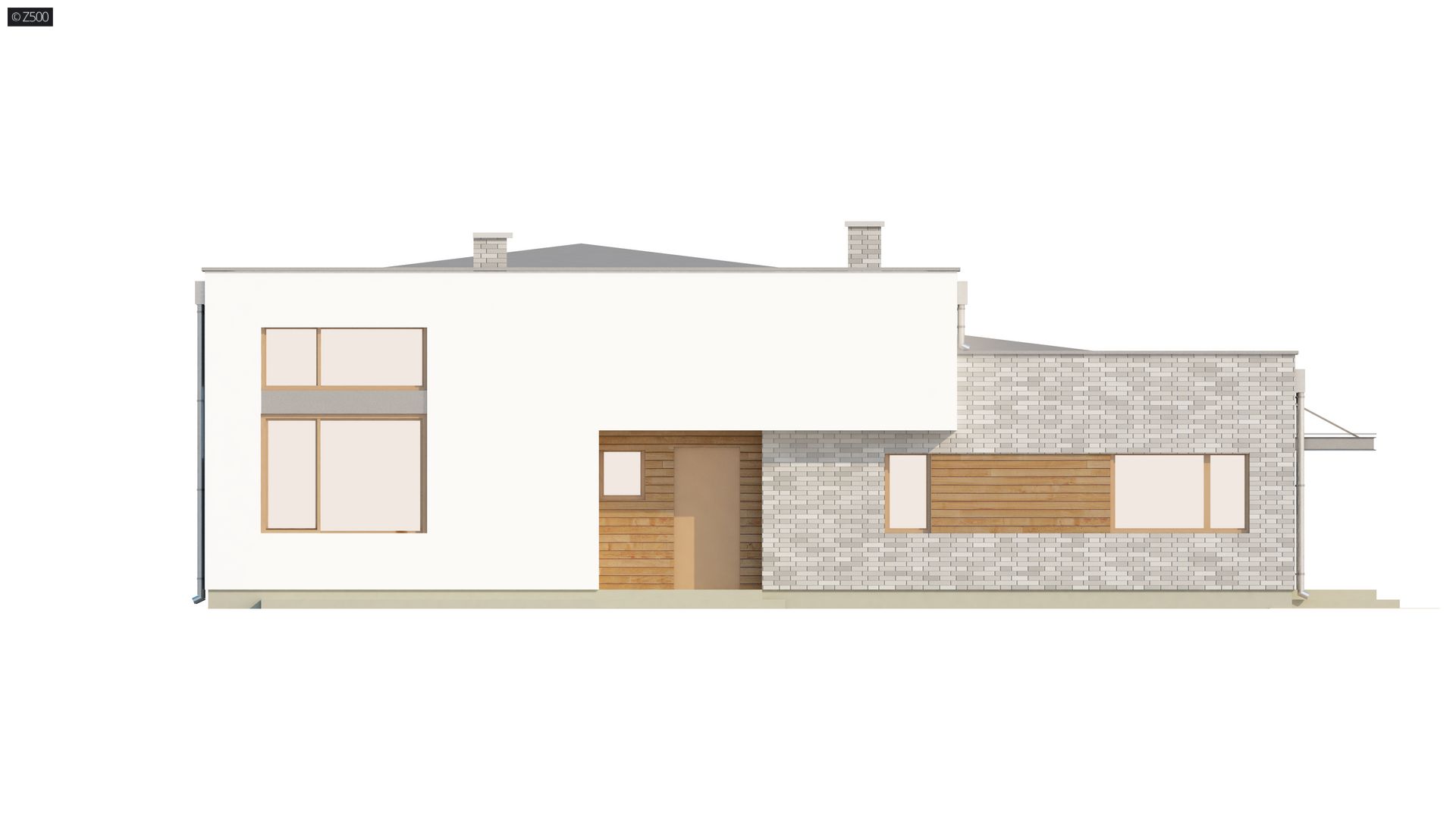 Projekt Zx34 to funkcjonalny dom parterowy podzielony na trzy strefy, dzienną podwyższoną, kuchenno-wejściową nad którą znajduje się strych, oraz część z trzema sypialniami. W części dziennej do której wchodzimy z holu zaprojektowano miejsce do konsumpcji, wypoczynku i nastrojowy kącik przy kominku. Atutem tego pomieszczenia są duże okna i wysokość pomieszczenia. Zaprojektowana centralnie kuchnia z wejściem z holu lub pokoju dziennego plus całkiem spora spiżarnia mają okna na taras i panoramę ogrodu. Pokój rodziców został zaprojektowany z dodatkowym pomieszczeniem, w którym można wykonać łazienkę bądź garderobę.