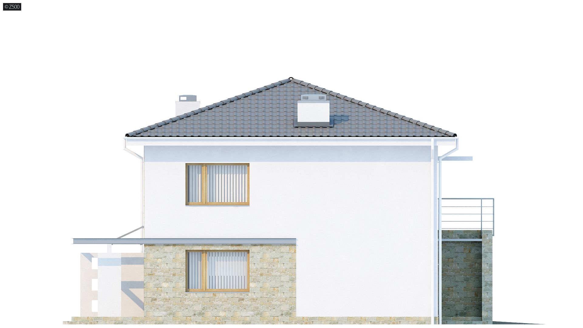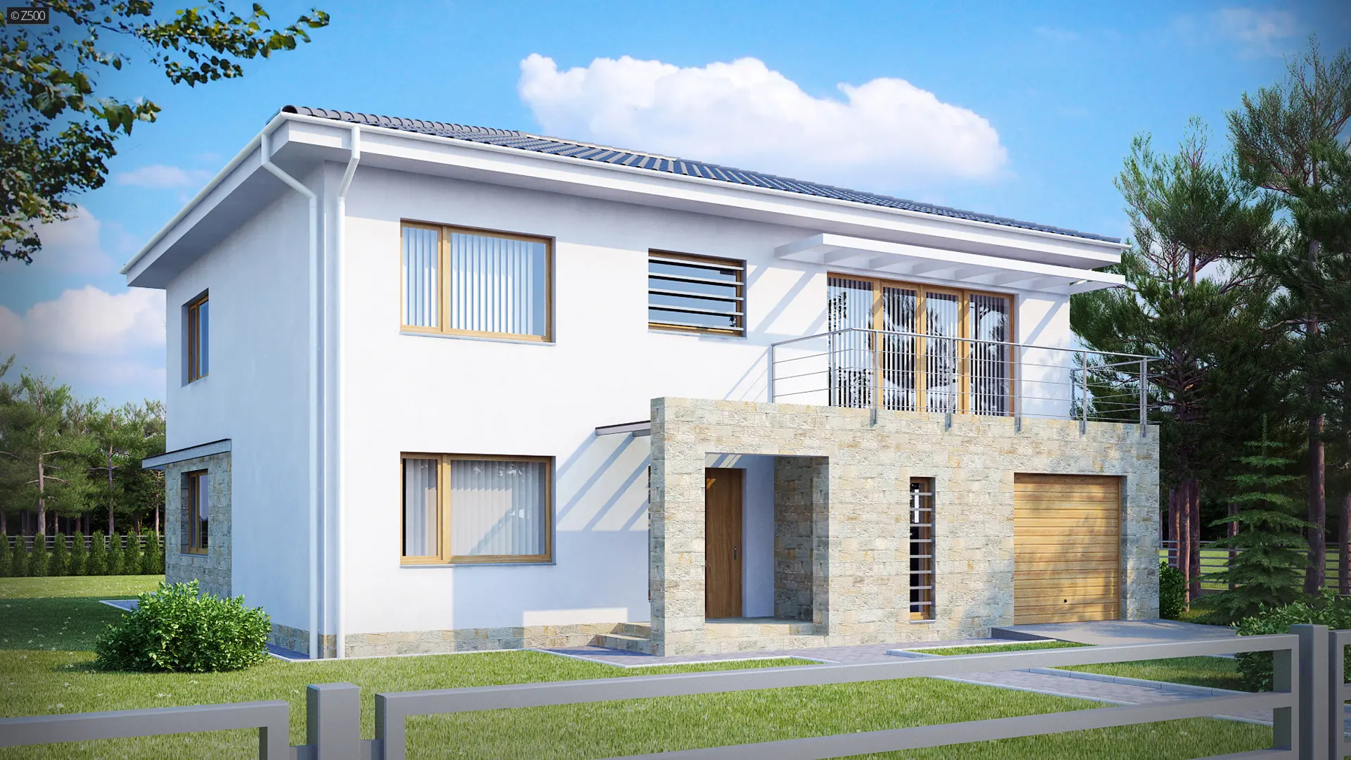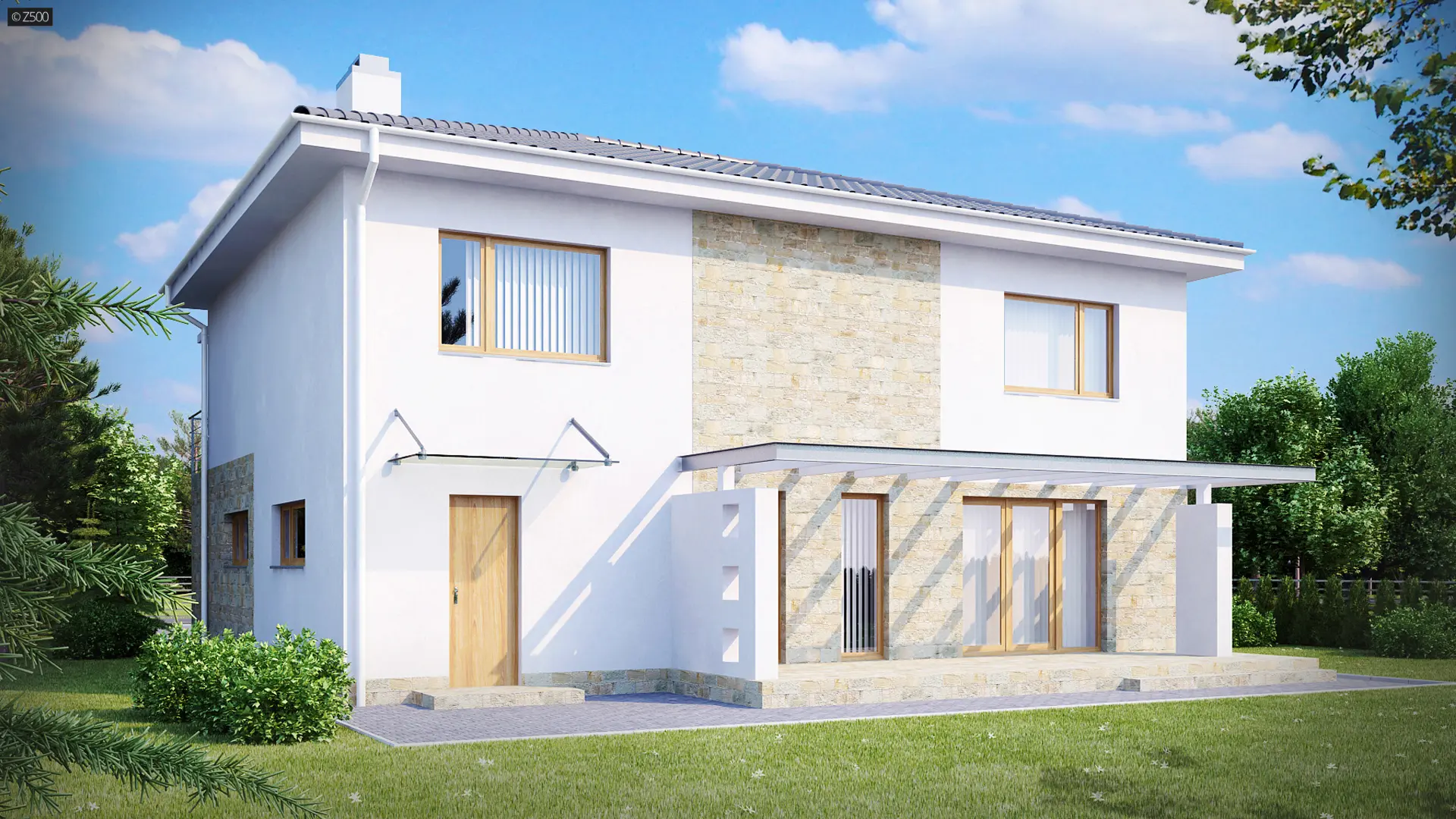 Projekt ZX4 to propozycja dla osób ceniących sobie nowoczesne wzorce. Prosta, foremna bryła budynku wzbogacona została elementami kamienia, stali i ciepłego drewna.