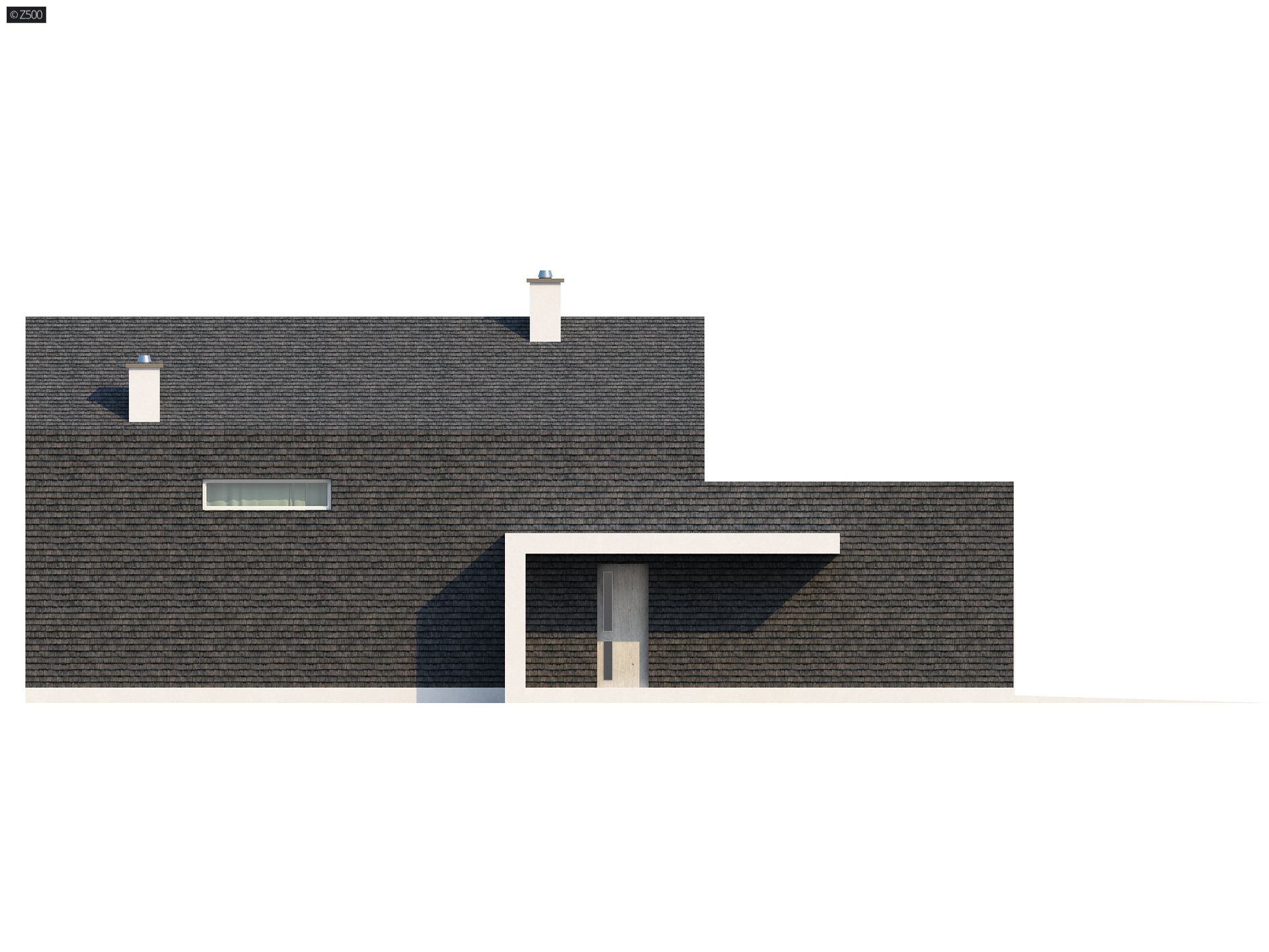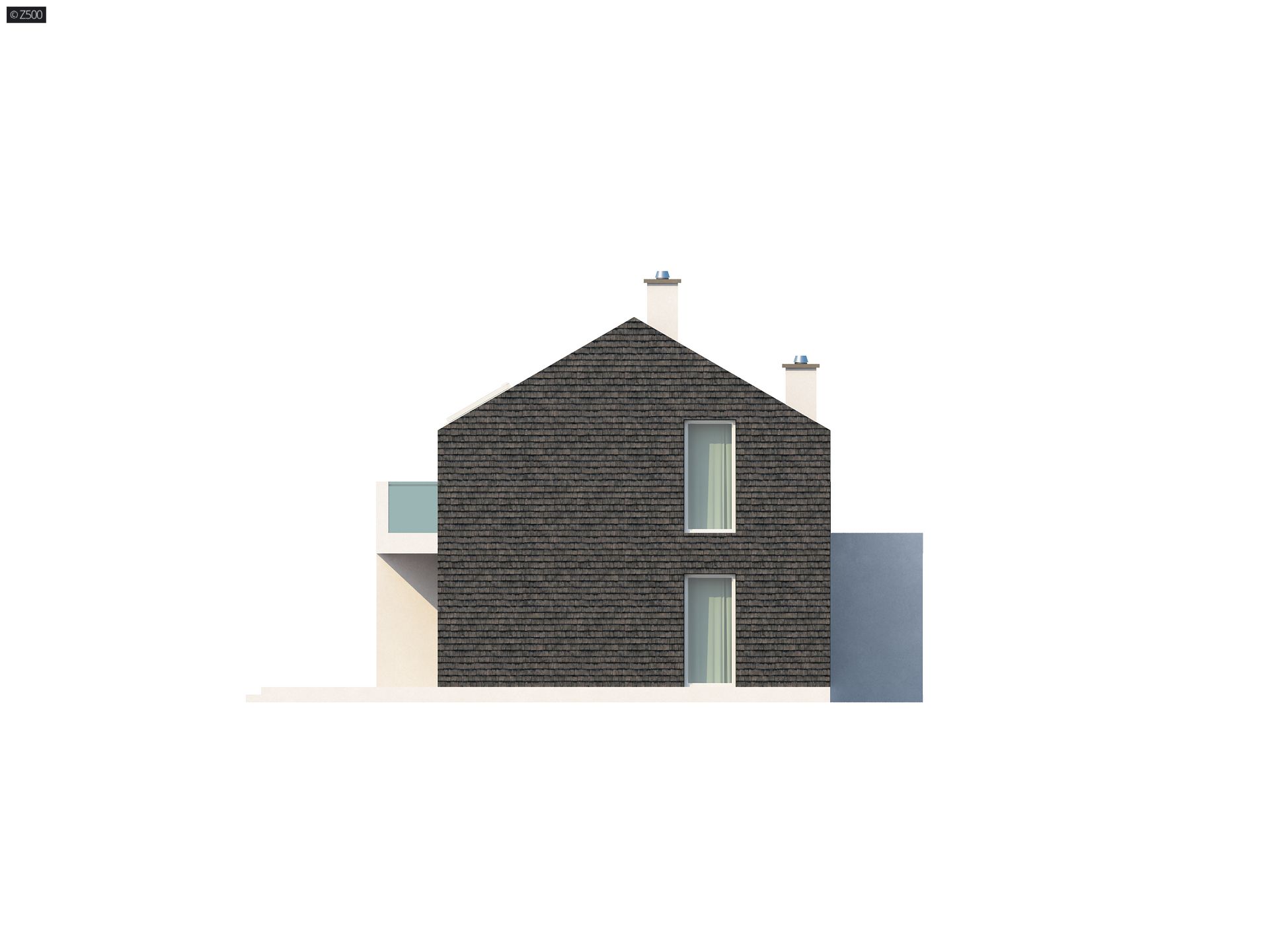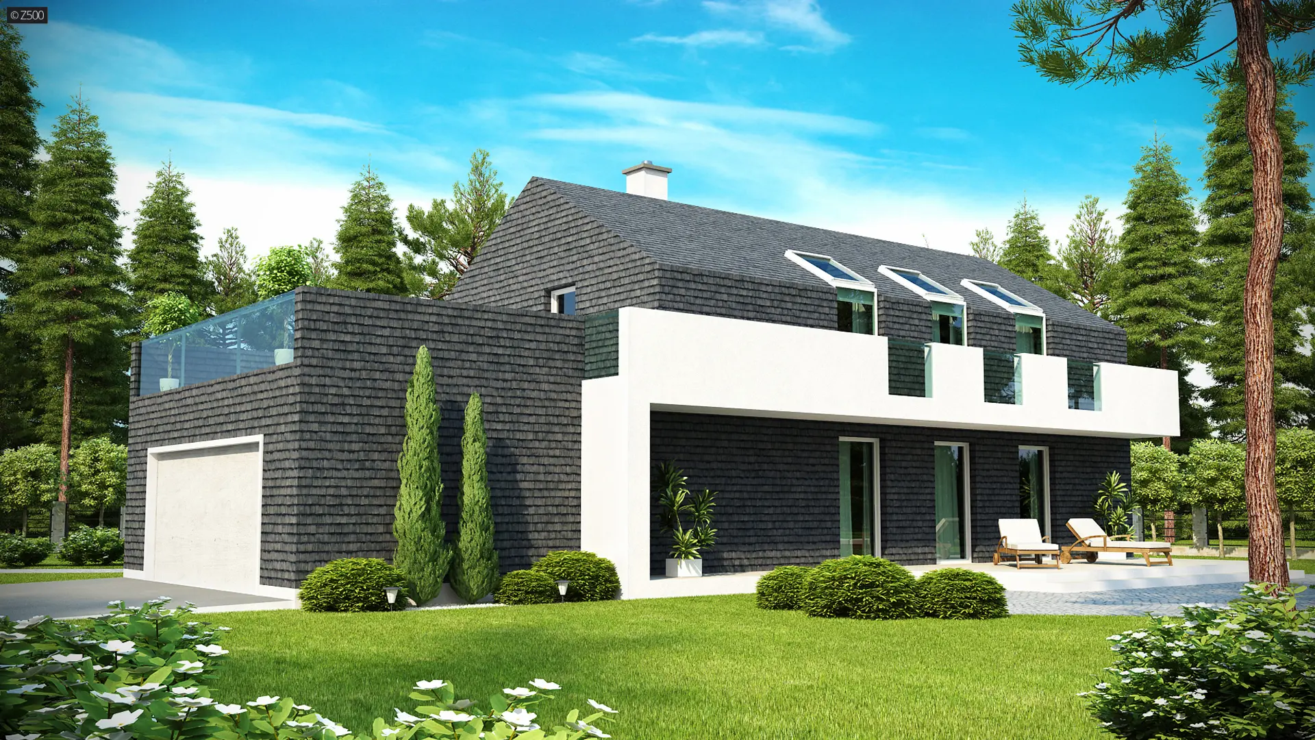 Zx40 to wyjątkowy projekt domu. Elewacja wykonana całkowicie w grafitowym goncie, podkreśla jego nowatorski charakter. Projekt doskonale nadaje się do zabudowy na wąską działkę z bocznym wjazdem do garażu. Stosując odpowiednie technologie dom z powodzeniem może pełnić funkcję energooszczędnego.