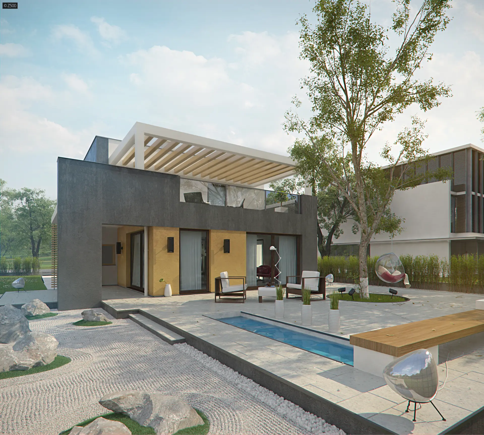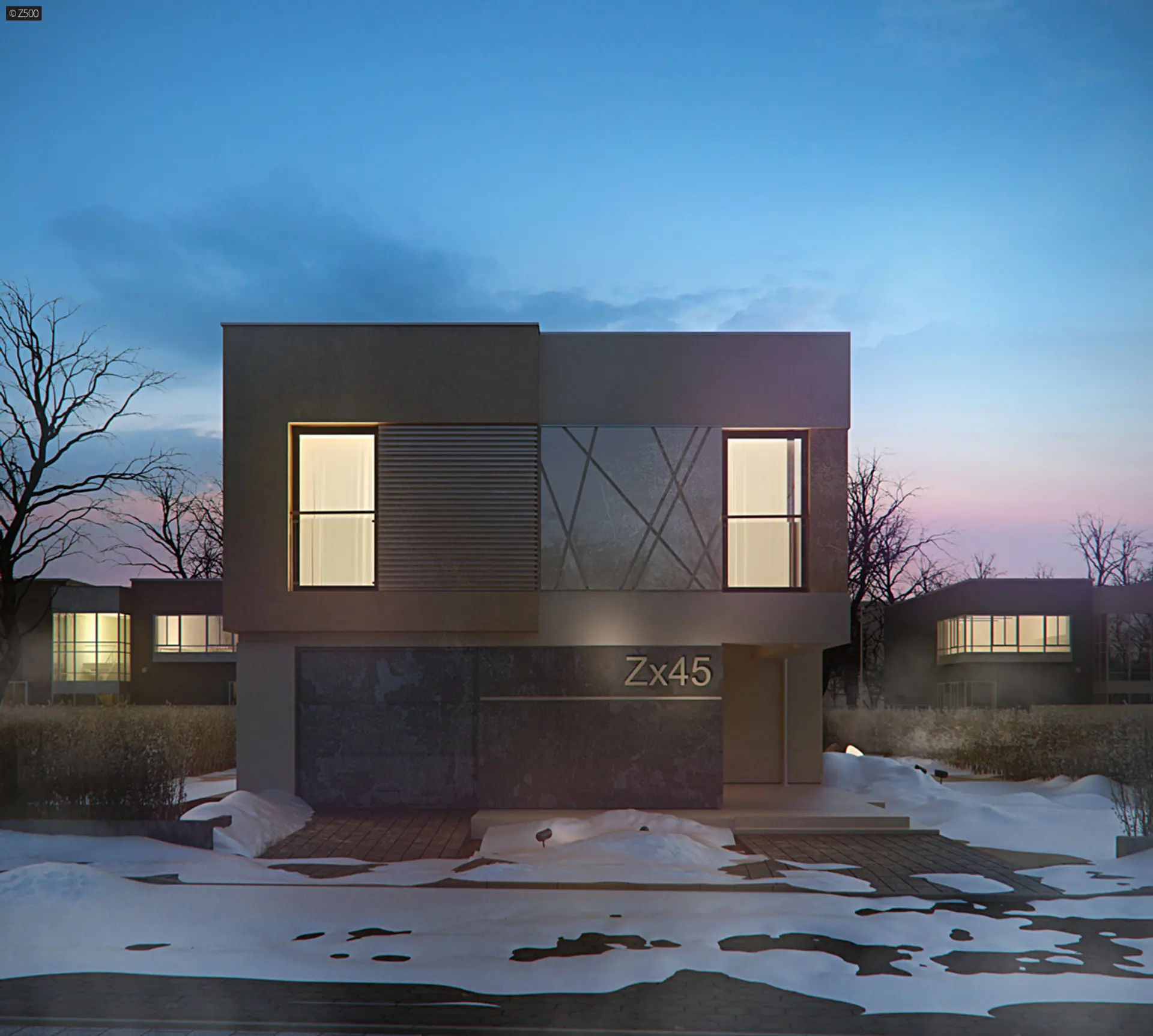 Zx45 2m to wyjątkowy piętrowy dom w nowoczesnym stylu o dwóch oddzielnie zamykanych mieszkaniach z garażem jednostanowiskowym. Atrakcyjna bryła z płaskim dachem, funkcjonalne wnętrze oraz ciekawe elementy wykończenia elewacji nadają mu osobliwy wygląd artyzmu.