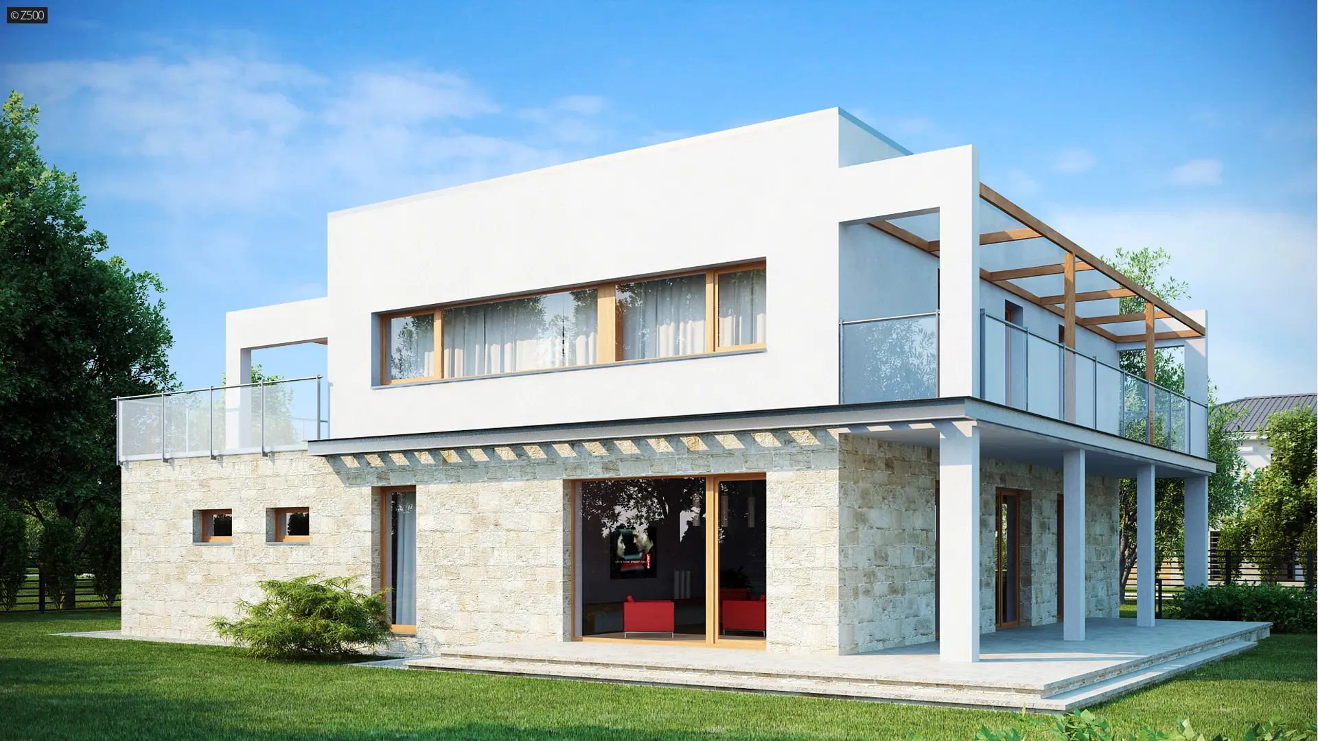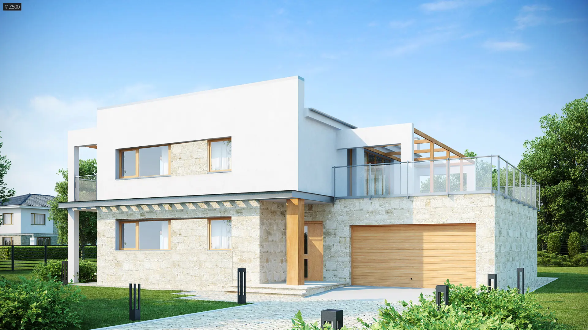 Zx5 2M to nowoczesny dom wolnostojący z dwoma odrębnymi mieszkaniami.