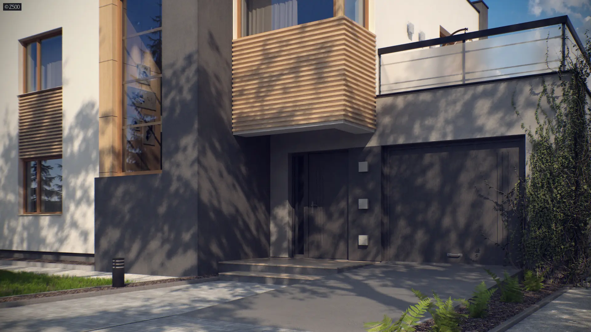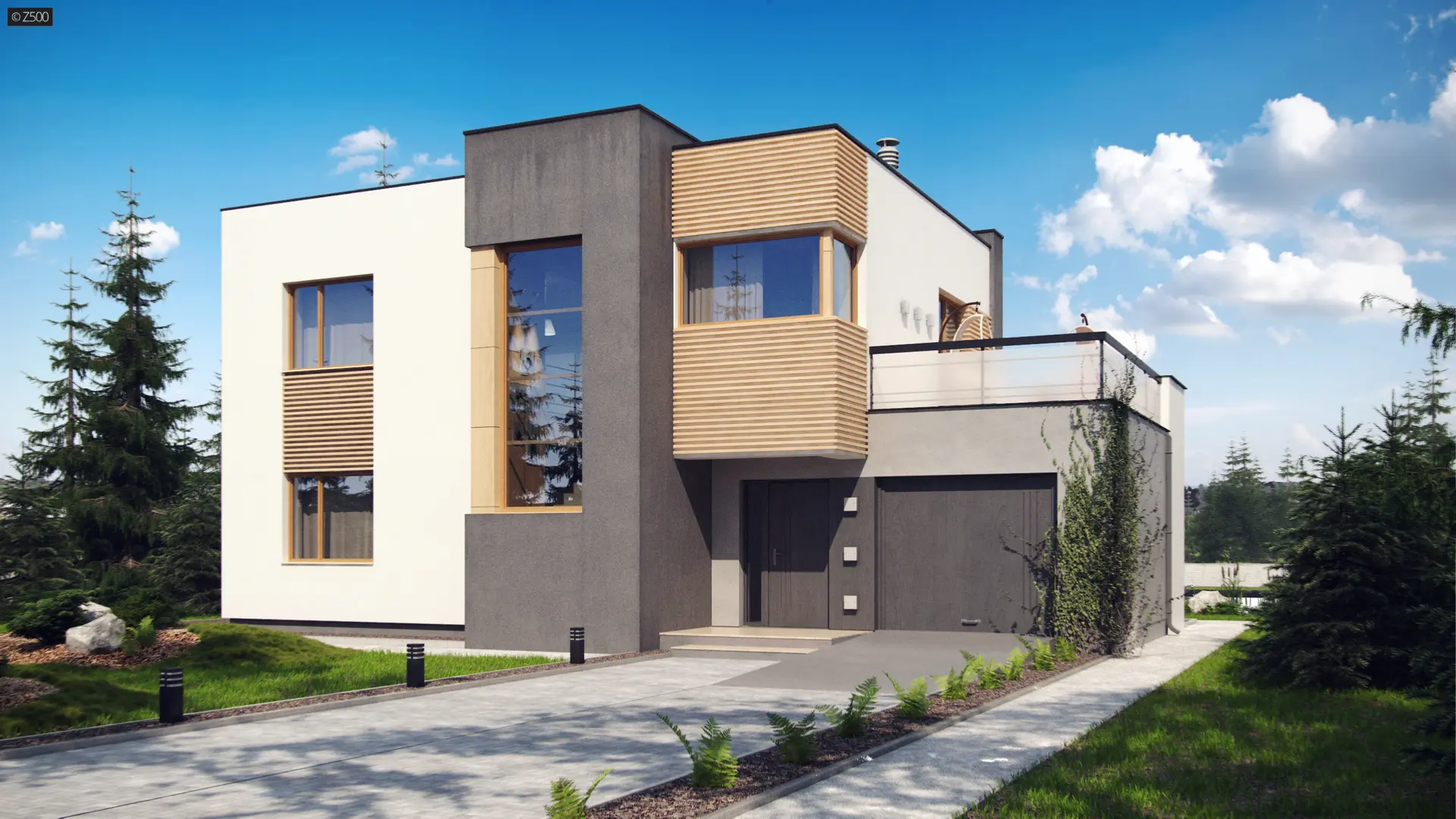 Zx59 to zgrabny dom piętrowy z garażem jednostanowiskowym o nowoczesnym charakterze.