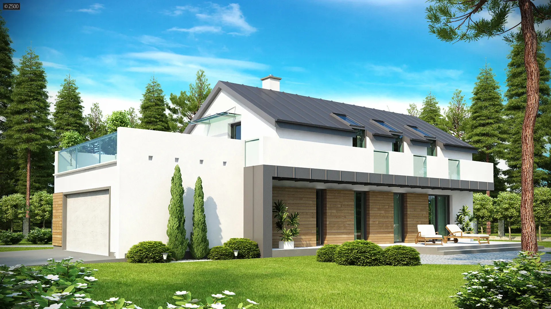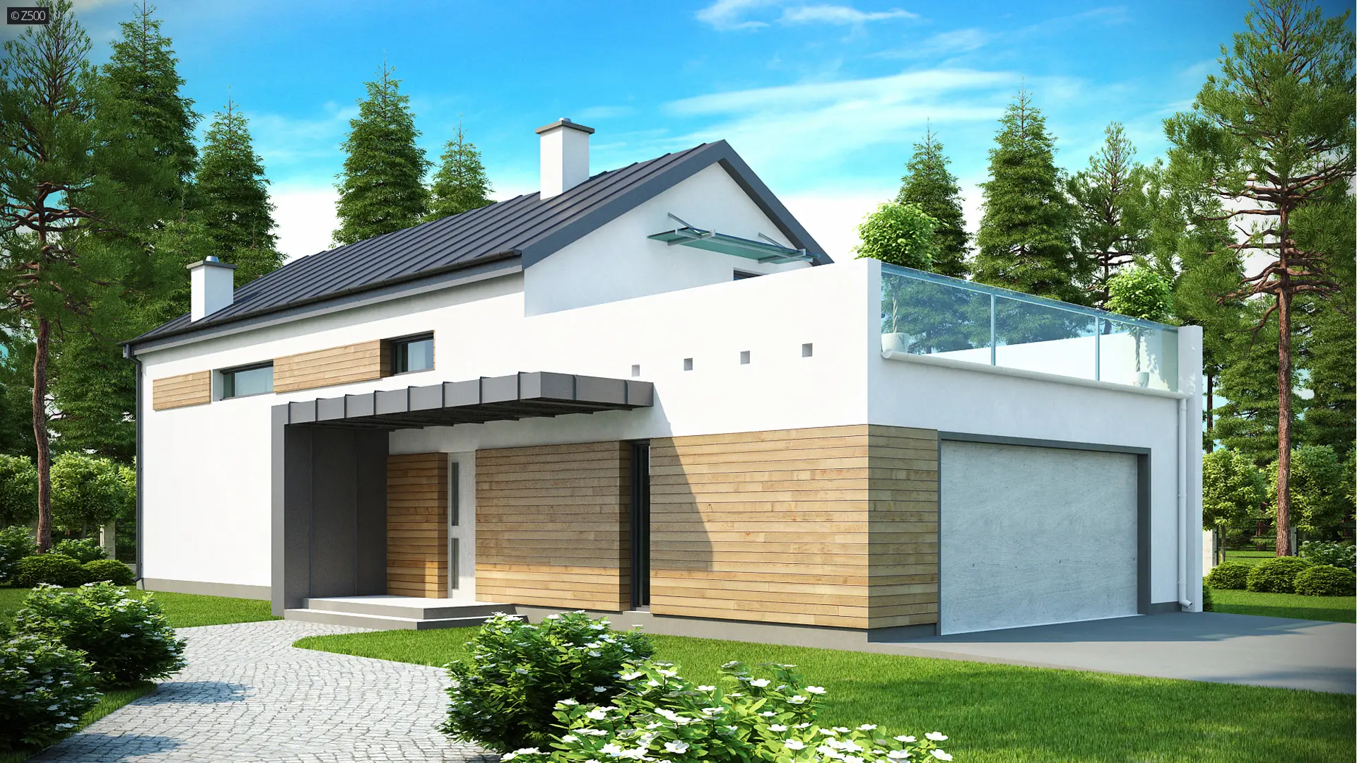 Zx60 to atrakcyjny dom jednorodzinny o nowatorskim charakterze i funkcjonalnych rozwiązaniach. Tradycyjna forma z dwuspadowym dachem została wzbogacona o modernistyczne detale. Ciemny dach z pokryciem na wrąbek i jasne elewacje, które stanowią kontrast, powodują że dom ten prezentuje się świetnie w każdym pejzażu. Idealnie nadaje się do zabudowy na wąską działkę lub z nietypowym usytuowaniem.