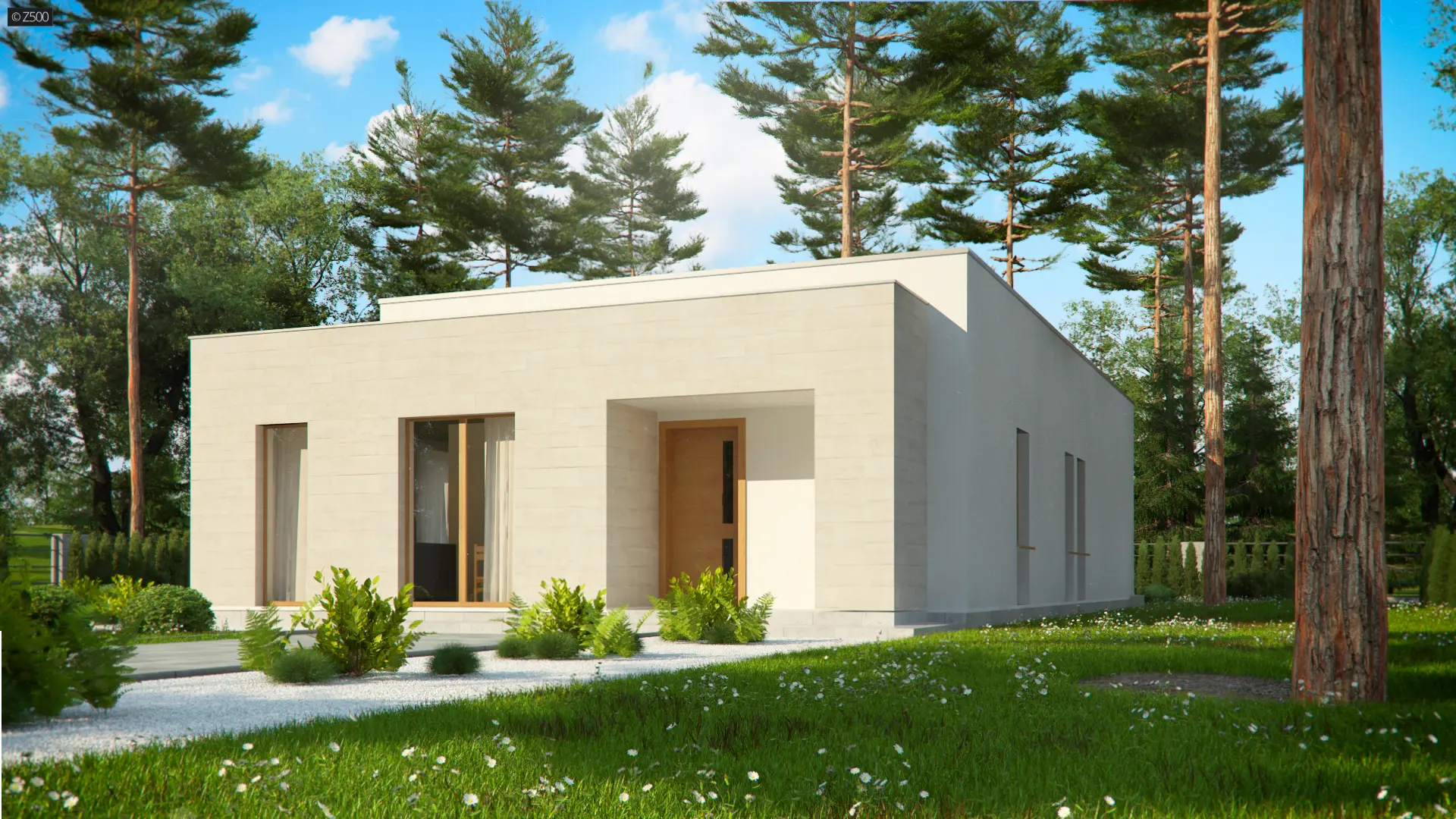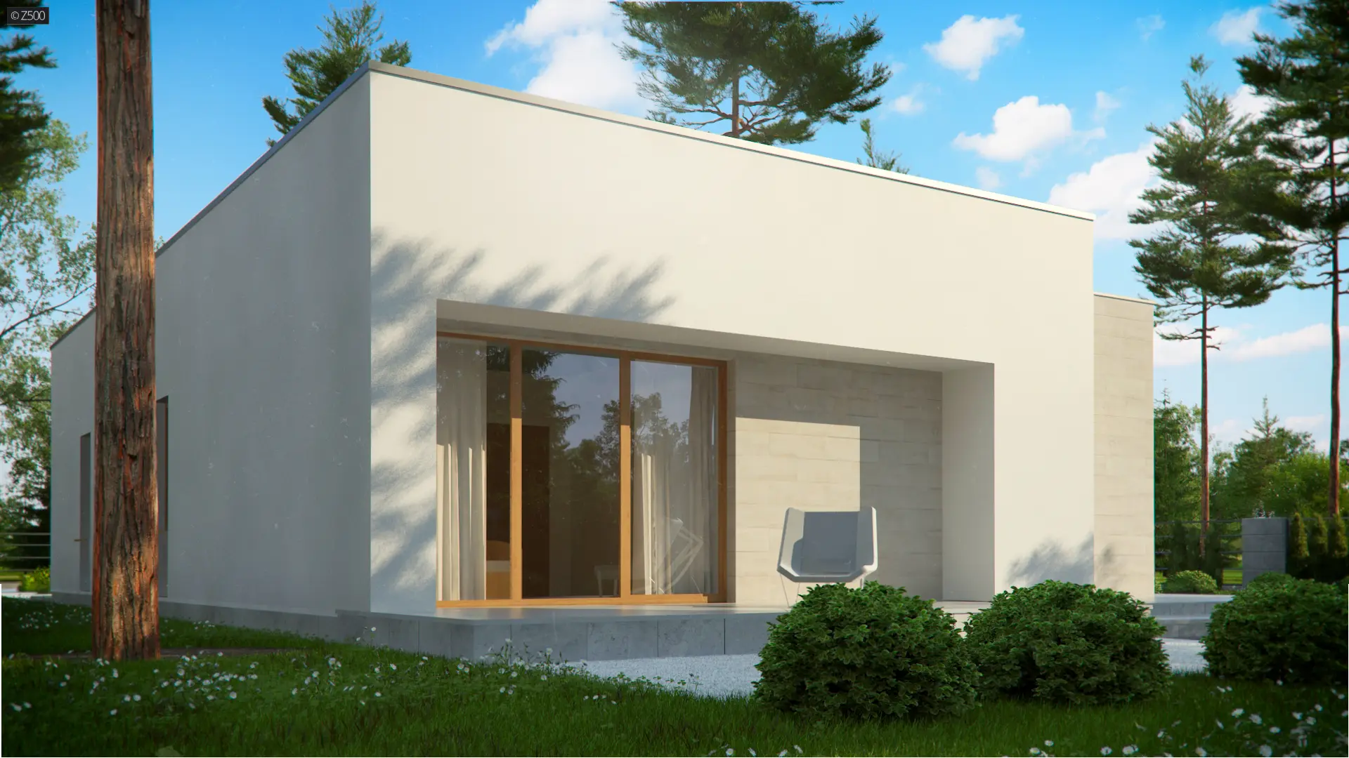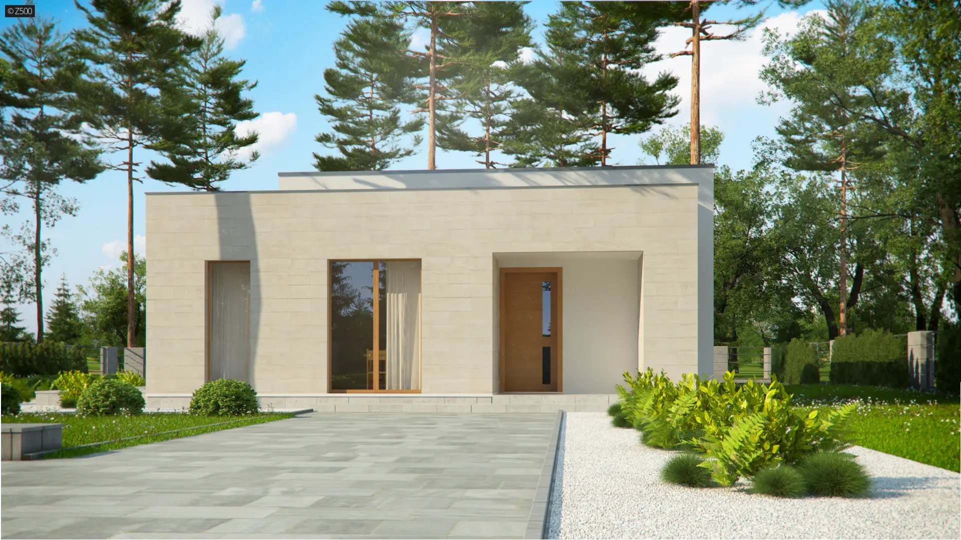 Zx67 to projekt, w którym nasi architekci wyszli naprzeciw potrzebom stworzenia nowoczesnego domu parterowego specjalnie z myślą o wąskiej działce. Dwa przenikające się prostopadłościany nadają budynkowi elegancki i lekki wygląd, a jasne odcienie powiększają optycznie jego regularną bryłę. Dzięki temu mamy możliwość wybudowania własnych i do tego gustownych „czterech kątów”, bez obawy, że będą one wyglądać niczym „autobus” czy „stodoła”.