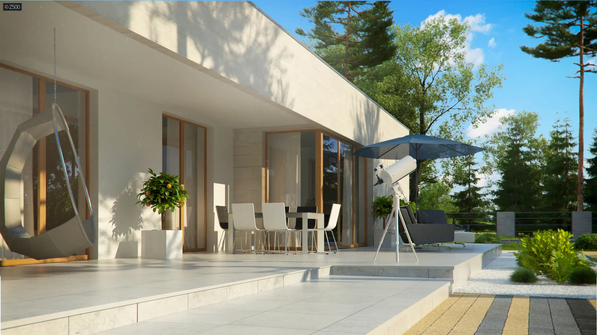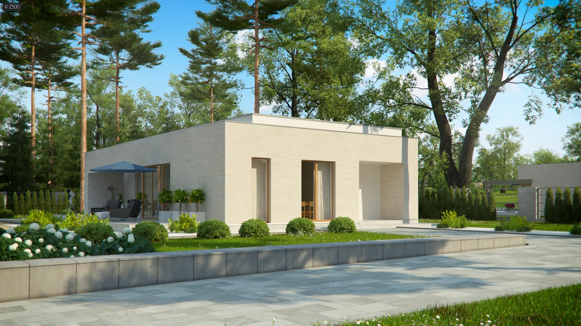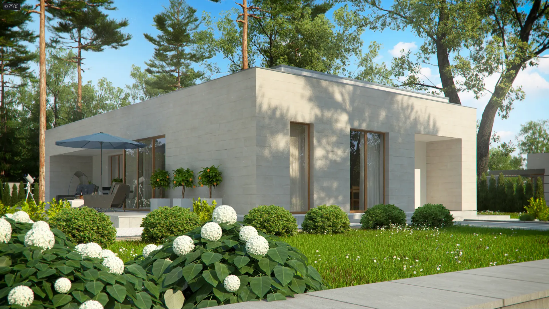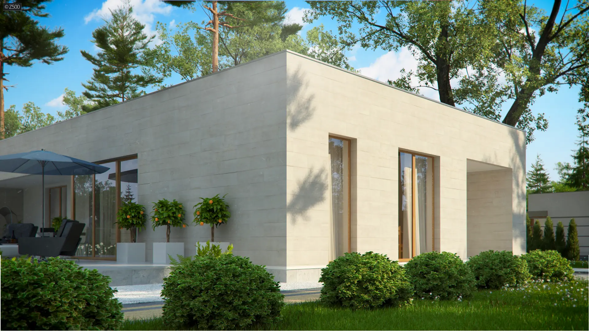 Zx67 to projekt, w którym nasi architekci wyszli naprzeciw potrzebom stworzenia nowoczesnego domu parterowego specjalnie z myślą o wąskiej działce. Dwa przenikające się prostopadłościany nadają budynkowi elegancki i lekki wygląd, a jasne odcienie powiększają optycznie jego regularną bryłę. Dzięki temu mamy możliwość wybudowania własnych i do tego gustownych „czterech kątów”, bez obawy, że będą one wyglądać niczym „autobus” czy „stodoła”.